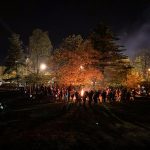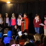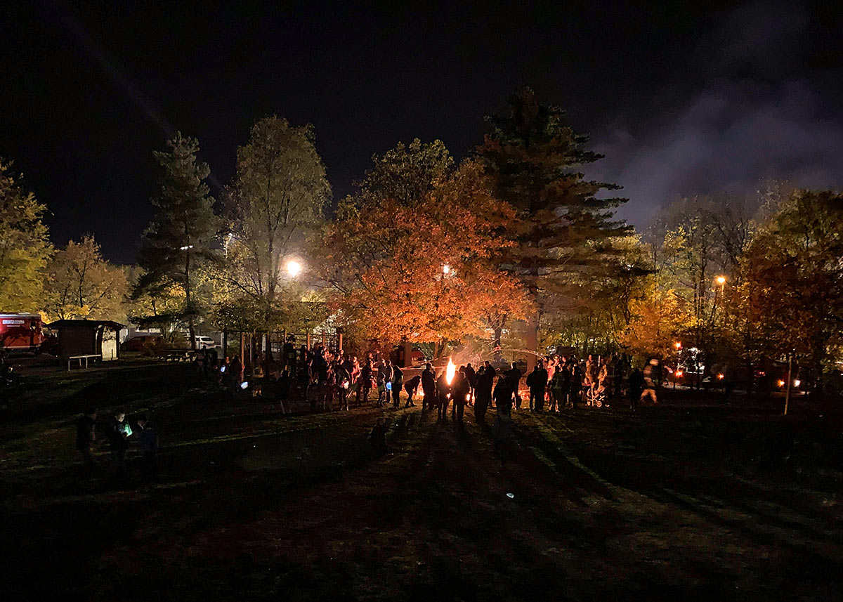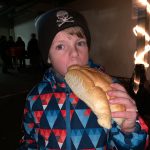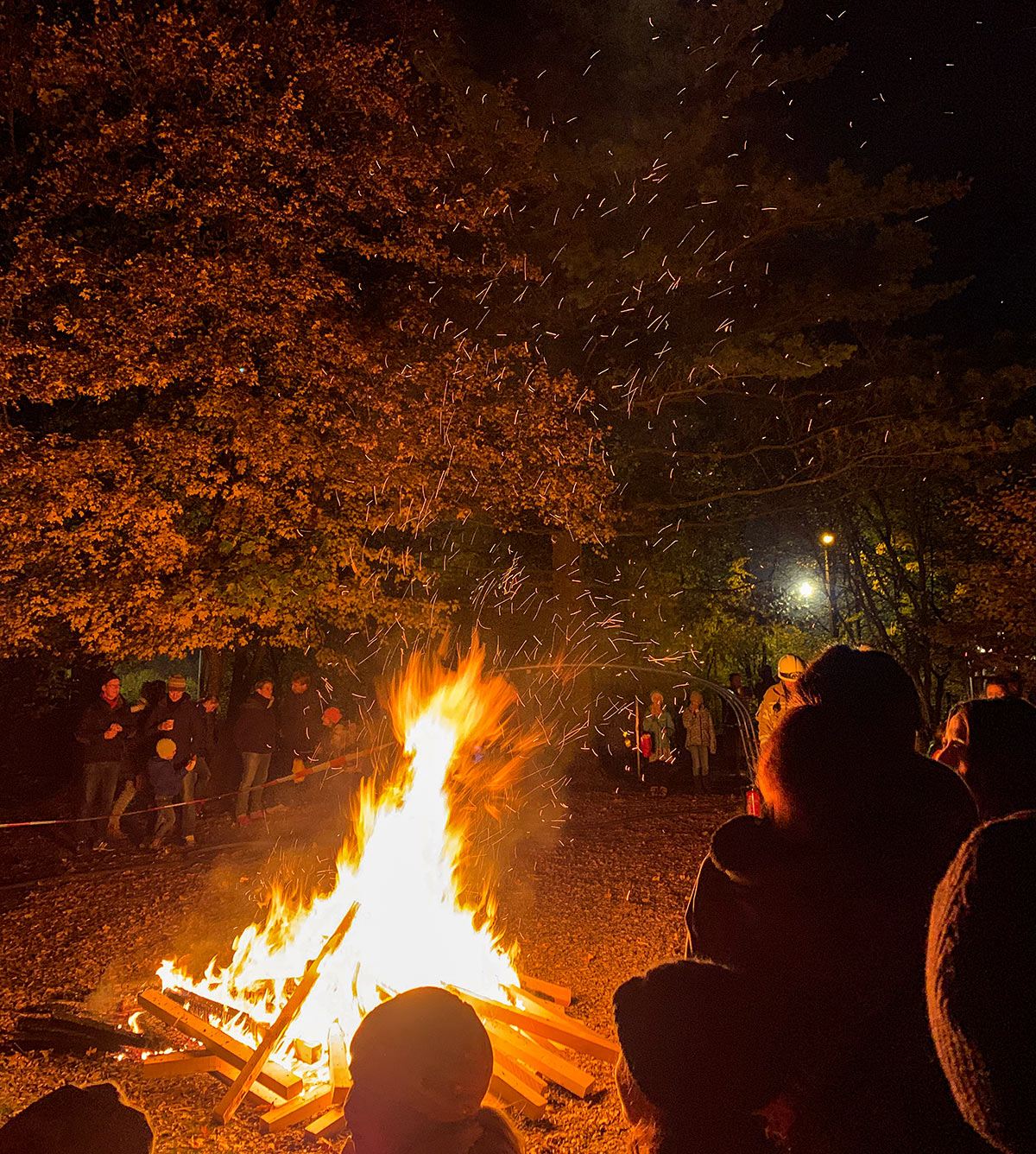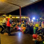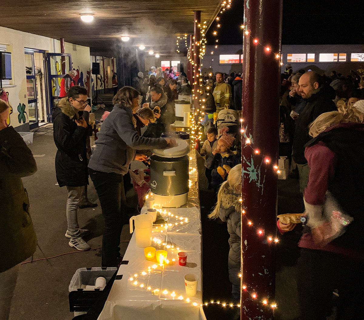 Auf dem Schulhof der Grundschule erwartete die Teilnehmer des Martinzuges ein Martinsfeuer, eine Theateraufführung, Weckmänner für die Kinder und Glühwein für die Erwachsenen.