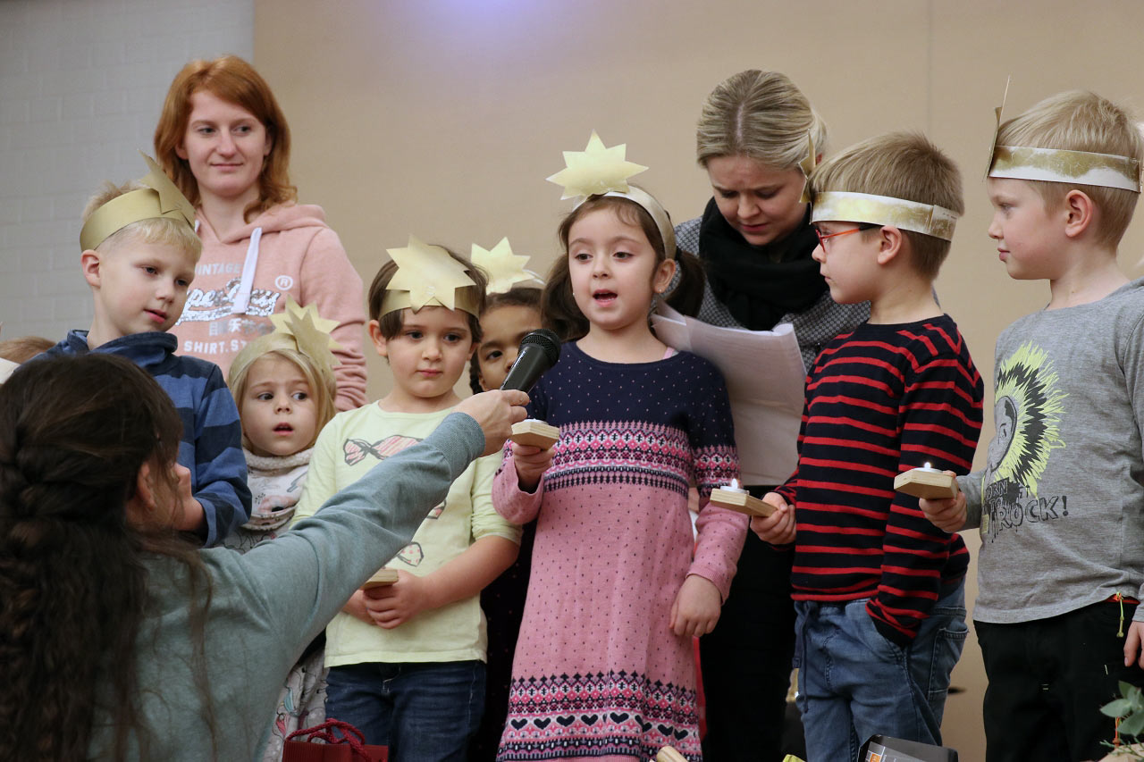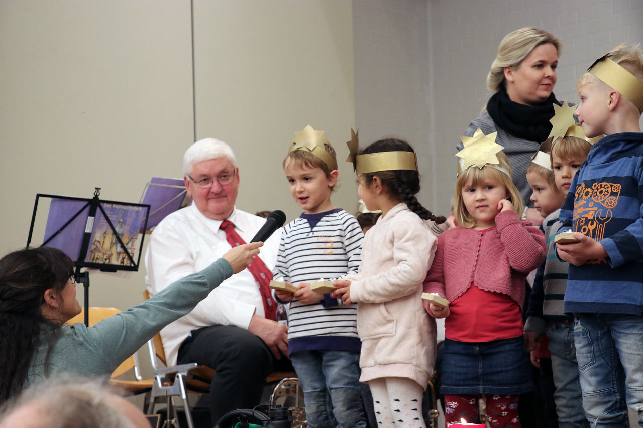 Vom Presbyterium, vielen Gemeindegruppen und den Nachbarkirchengemeinden wurde er noch einmal herzlich willkommen geheißen. Die musikalische Gestaltung des Empfang übernahmen der Posaunechor Drabenderhöhe-Mühlen, der Frauenchor Oberbantenberg und der Kindergartenchor. Die Kinder wissen schon: Kerzen leuchten hell zusammen.