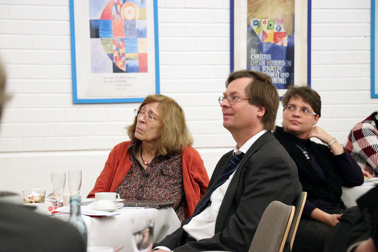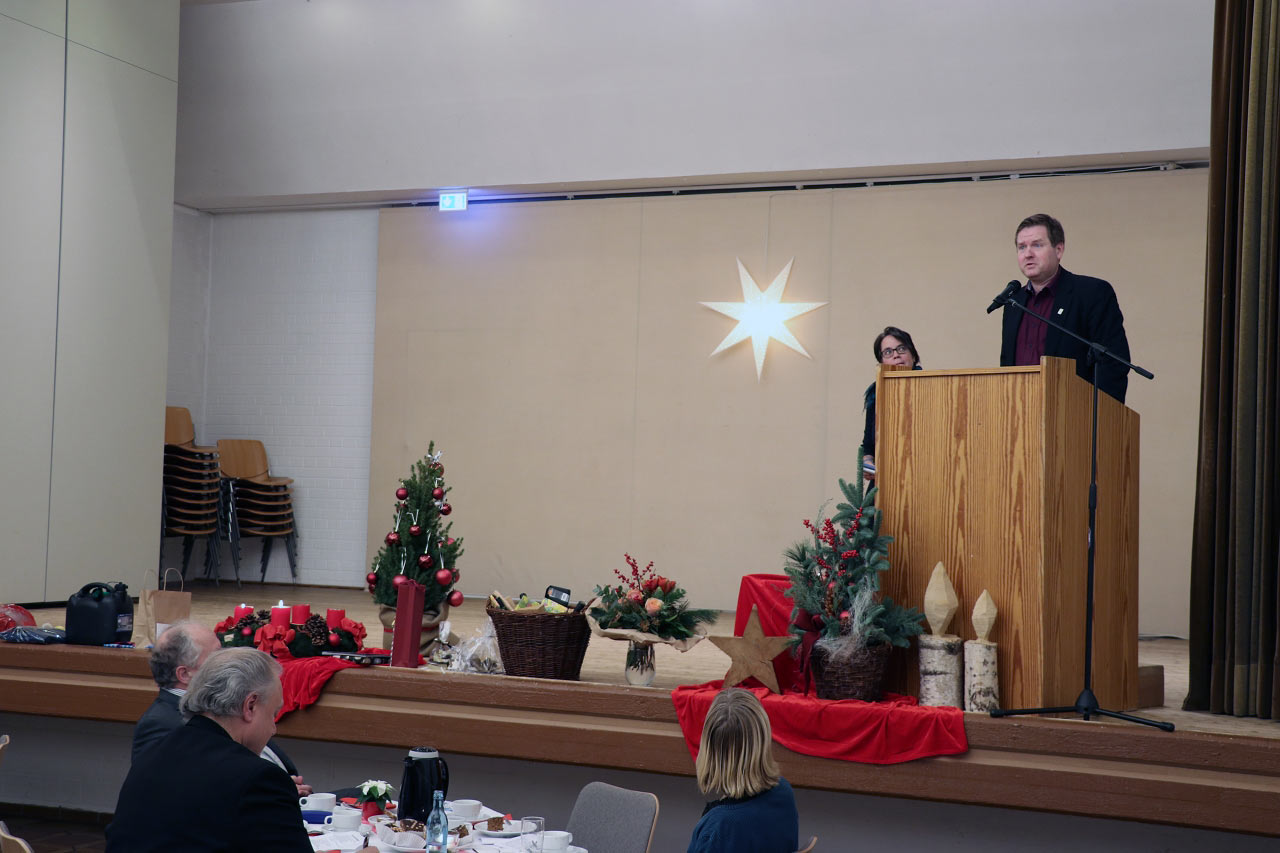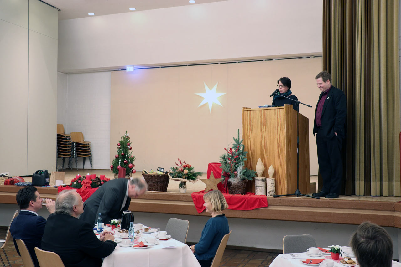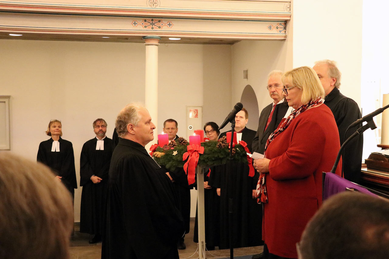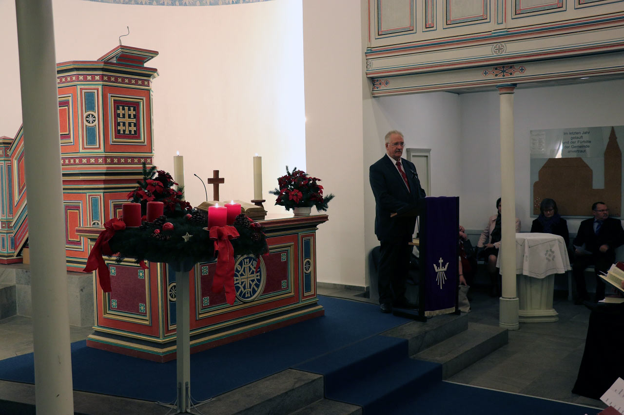 „Wie können wir heil werden und wie kann die Welt heil werden?“, fragte Jürgen Knabe. Jesus wolle ankommen mit aller Kraft. Die Menschen müssten nach gemeinschaftlichen Lösungen suchen und die ichbezogene Selbstverkrümmung überwinden. „Erhebt Eure Häupter!“ Die Hoffnung auf eine heile Welt sei dynamisch und lebensspendend. Der Advent Christi heiße: Es gibt eine heilsame Unterbrechung. Die Hoffnungsbotschaft von Weihnachten sei stärker als alle Katastrophenbotschaften.