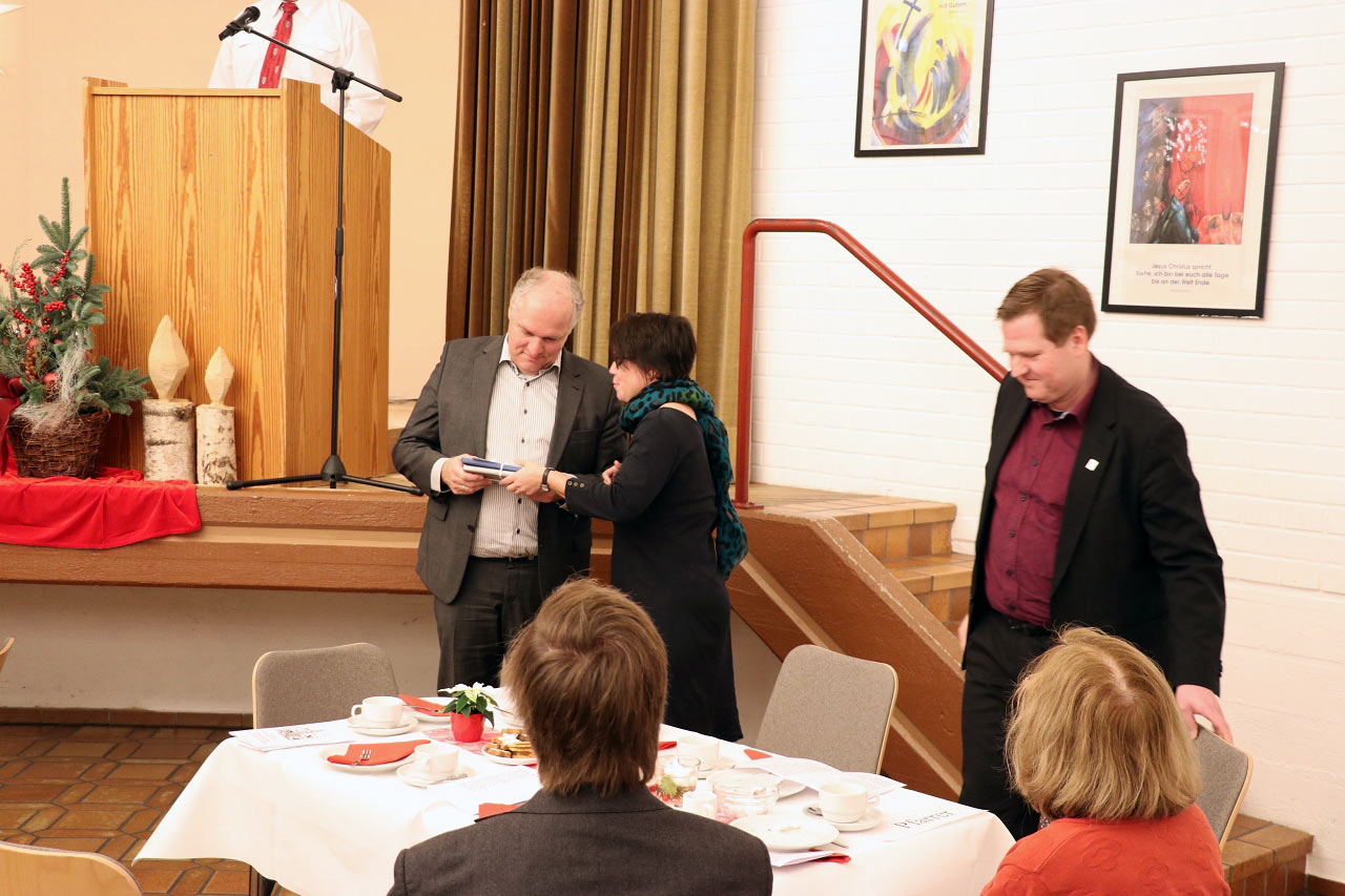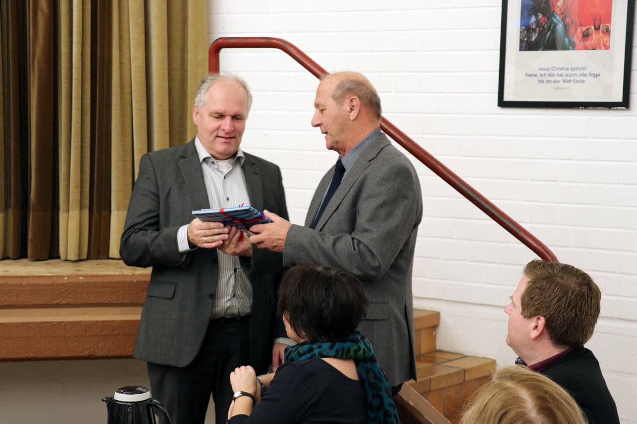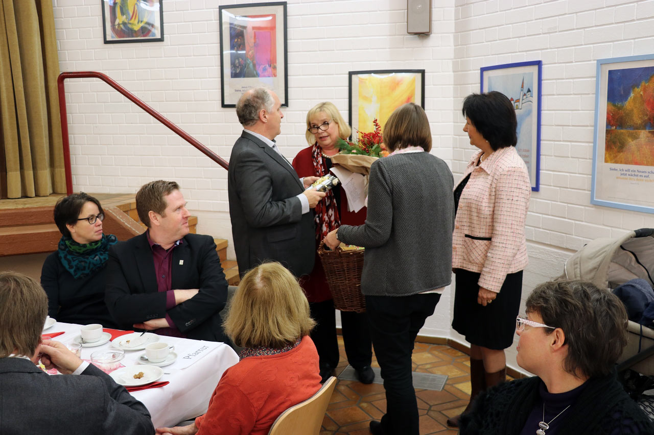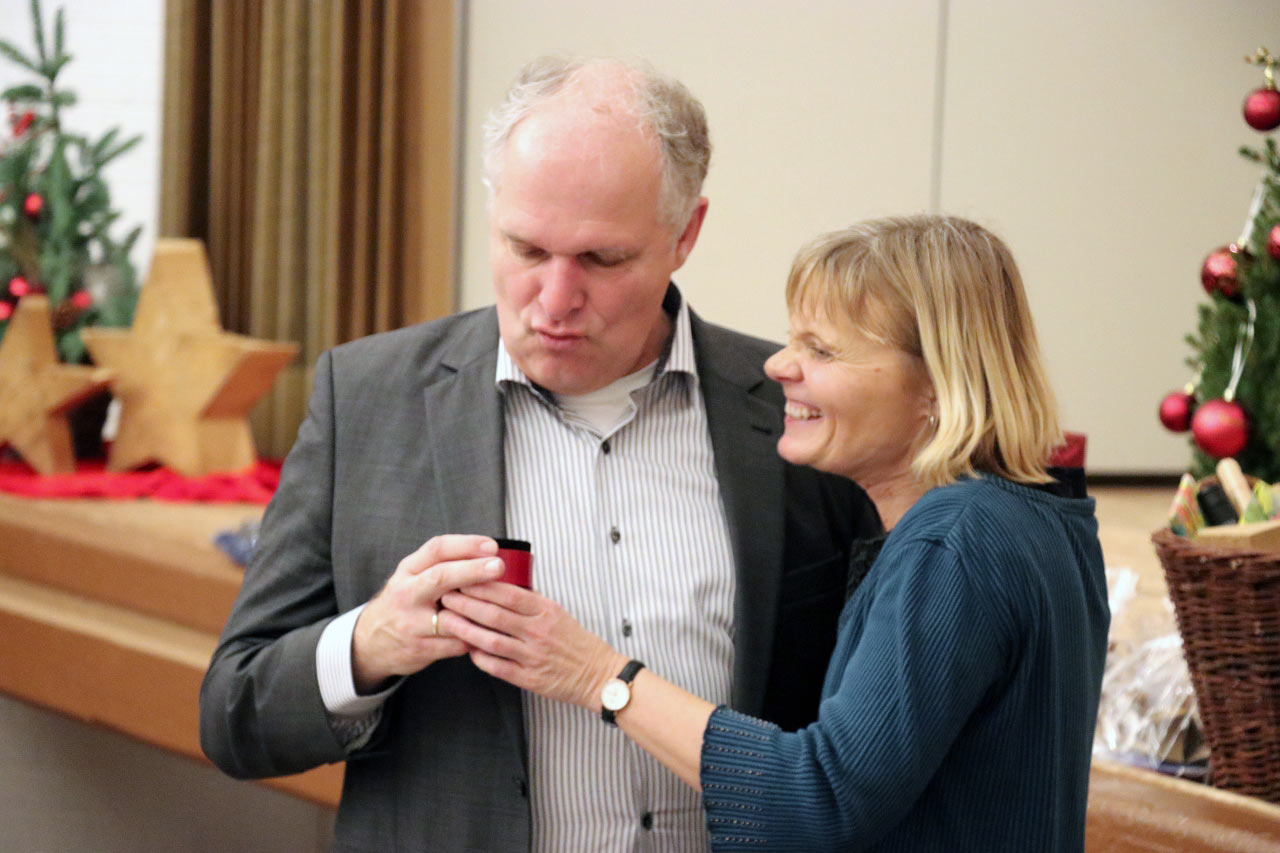 Beim Empfang im Gemeindehaus gab es viele herzliche Grußworte, unter anderem vom Wiehler Bürgermeister Ulrich Stücker. Die Drabenderhöher seien offen für Veränderungen, schon aus ihrer Geschichte heraus. „Sie wissen, wenn man in Gemeinschaft lebt, kann man Zukunft gestalten.“ Pfarrerin Kristi Greier, Ehefrau von Gernot Ratajek-Greier, die in Münster als Referentin für Kindergottesdienst der Evangelischen Kirche in Deutschland arbeitet, nannte ihren Mann „einen Fels in der Brandung“. Und auf einen Fels könne man auch gut Gemeinde bauen.