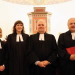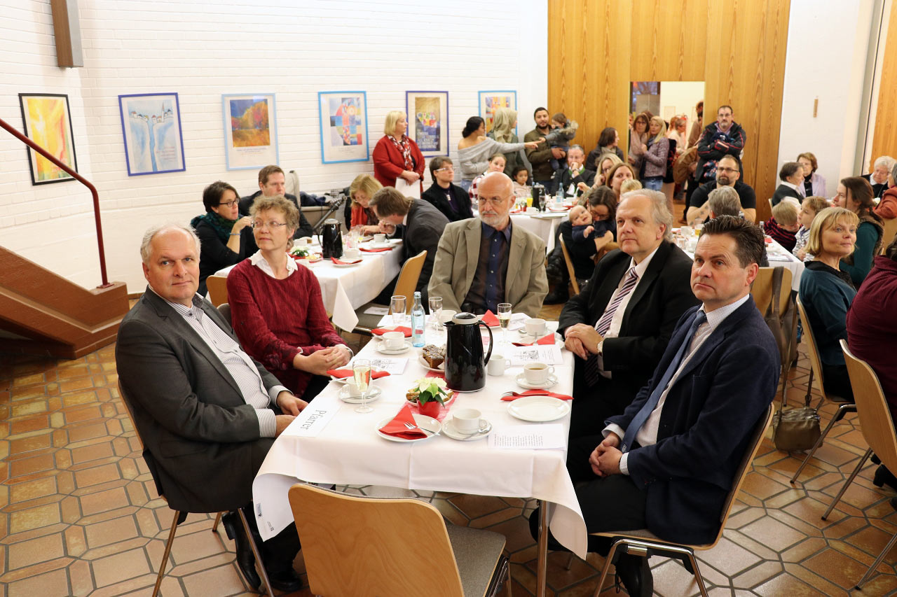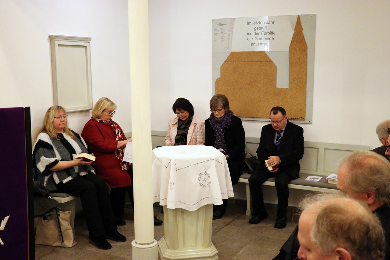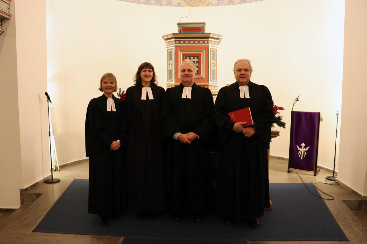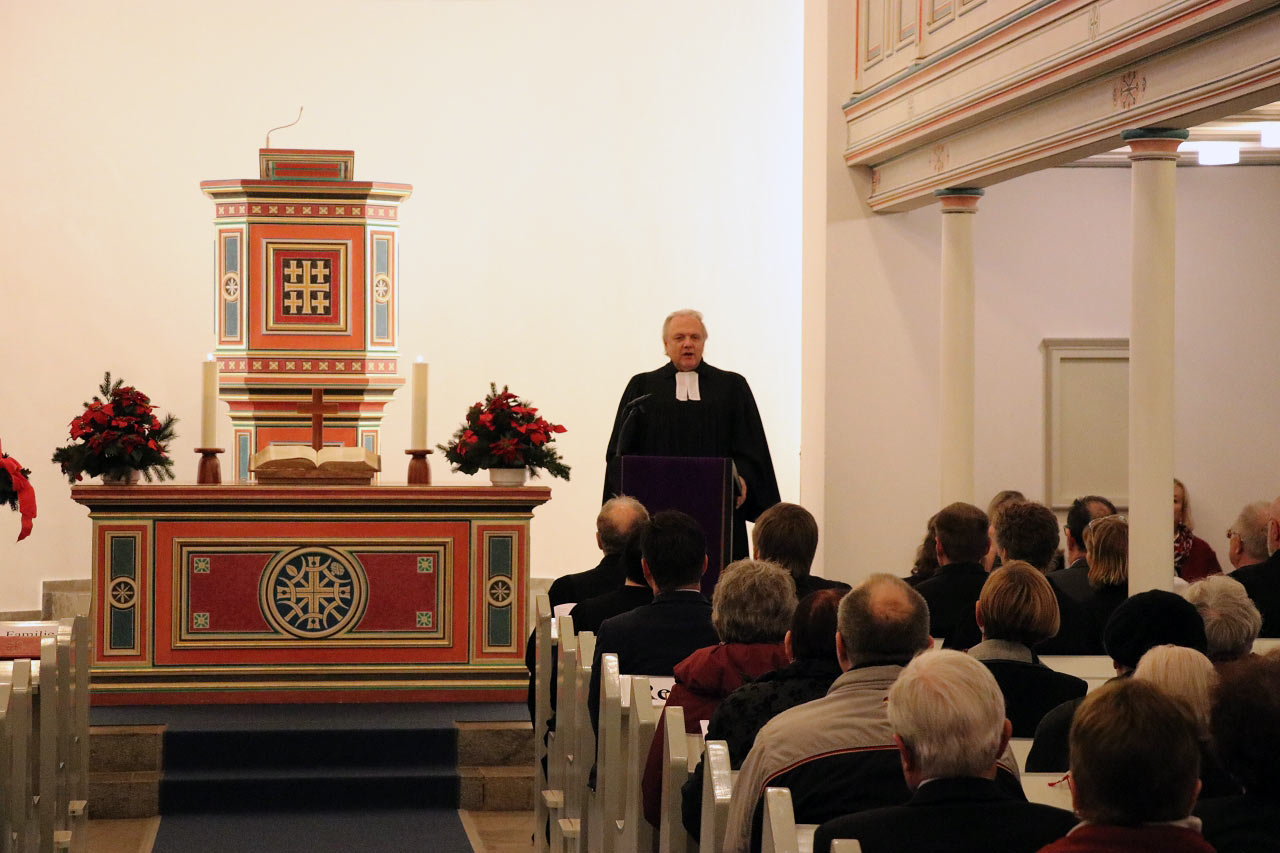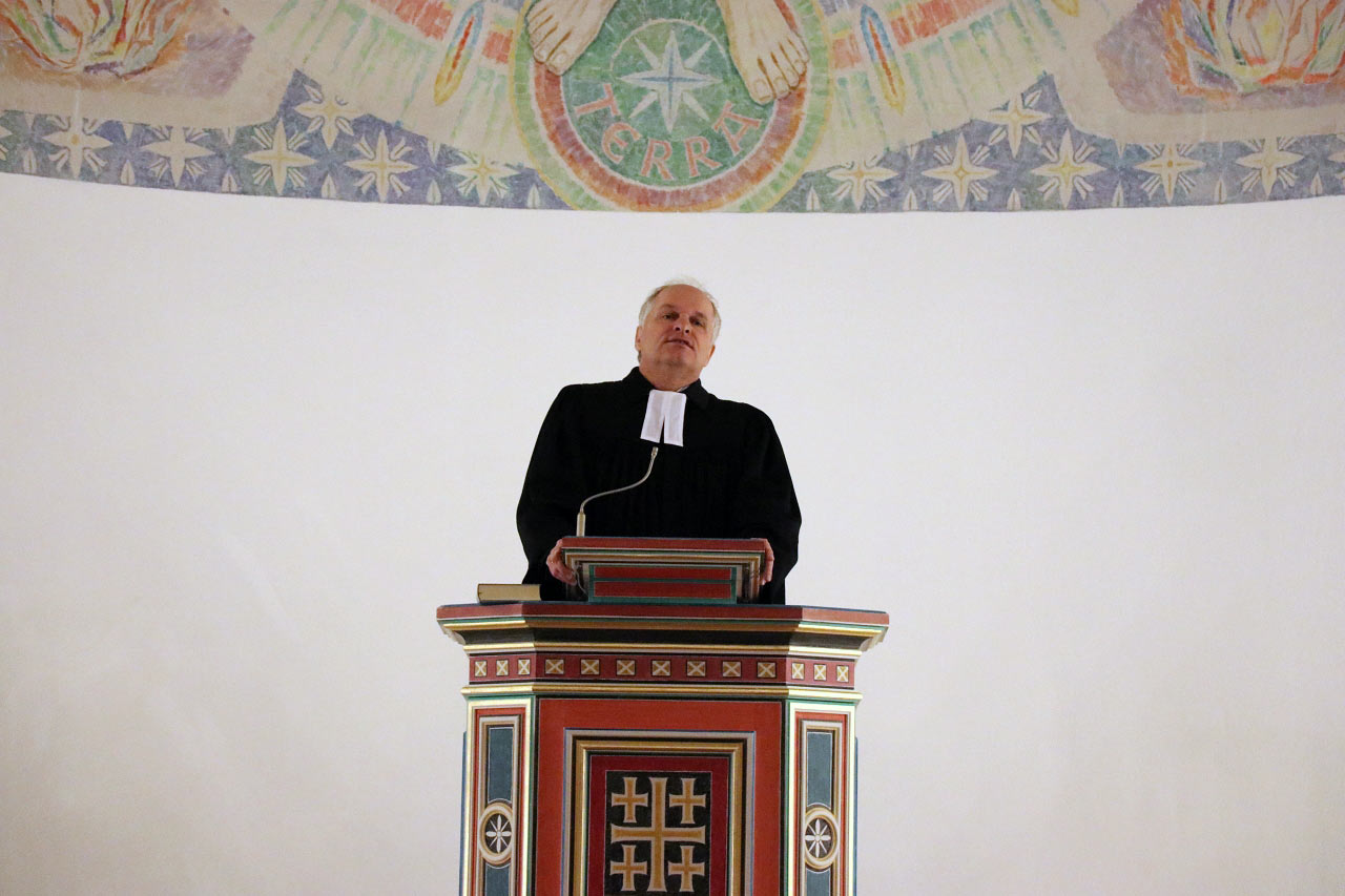 „Wir alle sind Gottes Bodenpersonal“, betonte Gernot Ratajek-Greier in seiner Predigt, „nicht nur ich hier vorne im schwarzen Talar.“ Angesichts der vielen schlechten Meldungen in den Nachrichten stelle man fest: „Gott ist anders, und die Welt soll auch anders sein.“ Die Verherrlichung der Vergangenheit sei aber falsch. „Die gute alte Zeit gab es nie!“ Jetzt sei der Moment, an dem alle gemeinsam Gottes Reich erbauen könnten. „Gott hat uns nicht zum Jammern und Klagen in die Welt gestellt.“