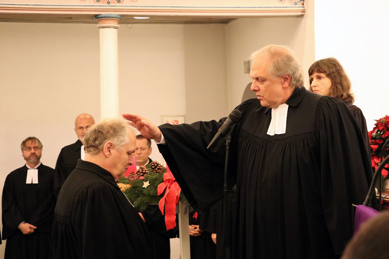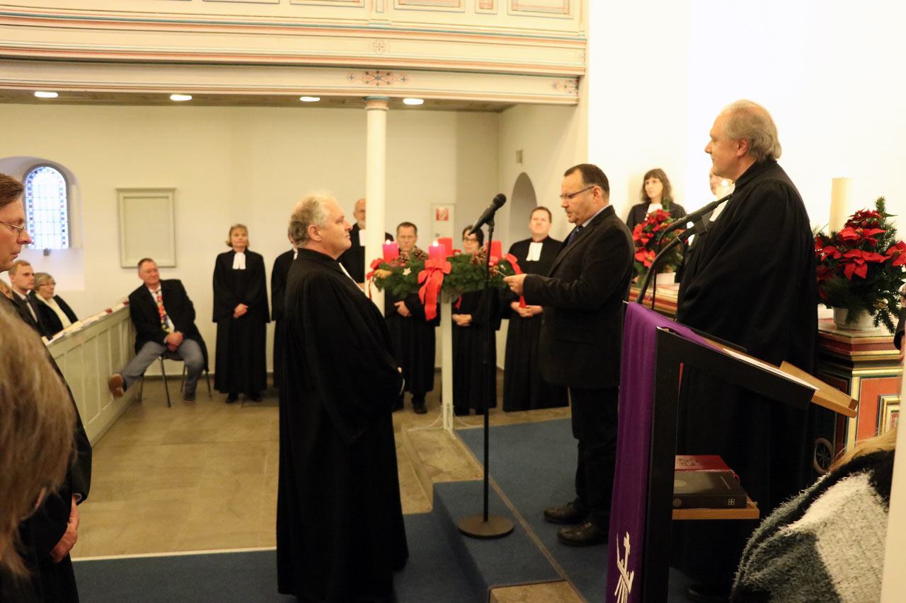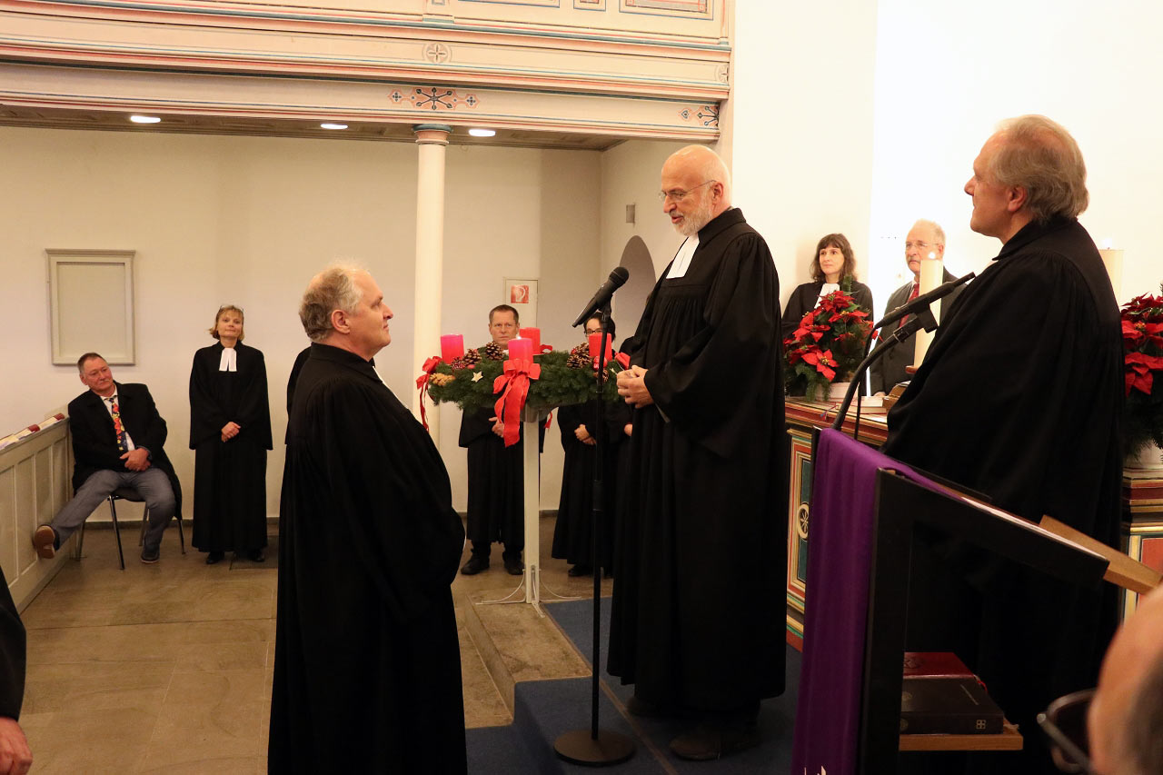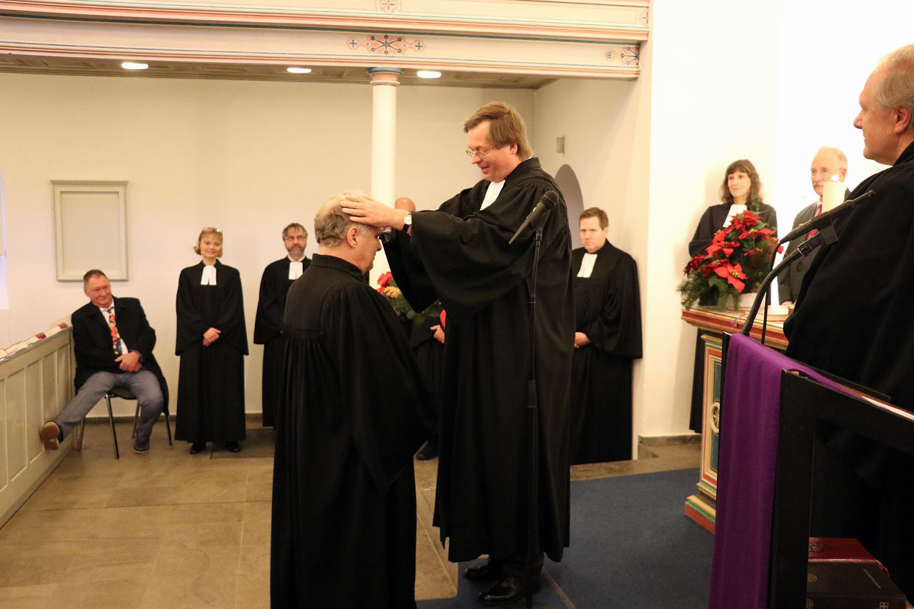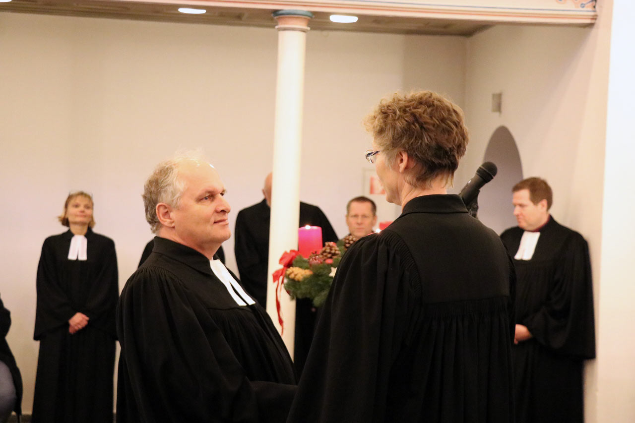 Superintendent Jürgen Knabe bat in seiner Einführungsansprache darum, den neuen Pfarrer freundlich aufzunehmen, auch unter den geänderten Bedingungen in der Gemeinde. Nach den Verabschiedungen von Pfarrer Kapff im Juli und von Pfarrer Frank Müllenmeister, der eine 50-Prozent-Stelle besetzte, im Januar, hat die Gemeinde jetzt nicht mehr anderthalb Pfarrstellen, sondern nur noch eine ganze Pfarrstelle für die Gemeinde mit 3400 Gemeindegliedern.