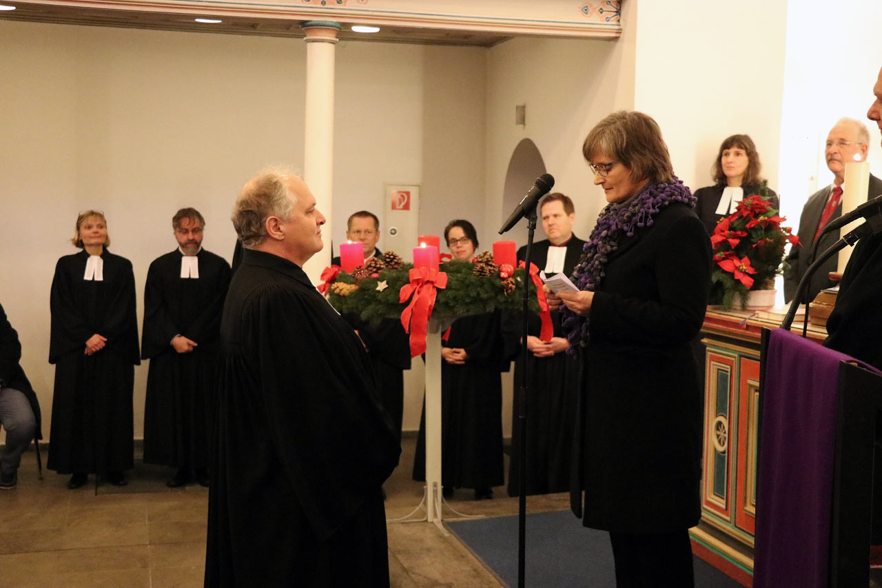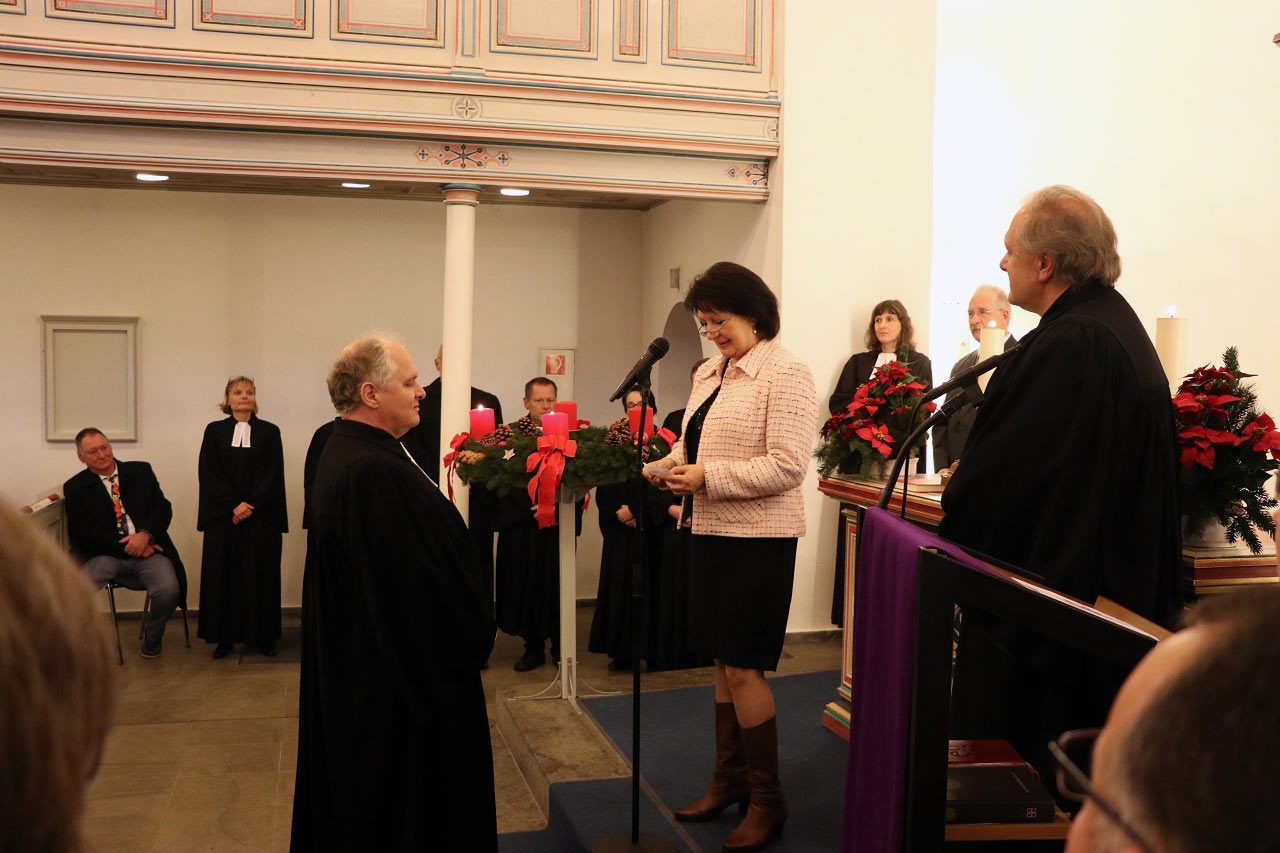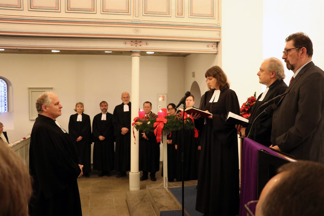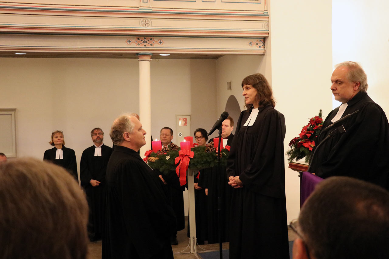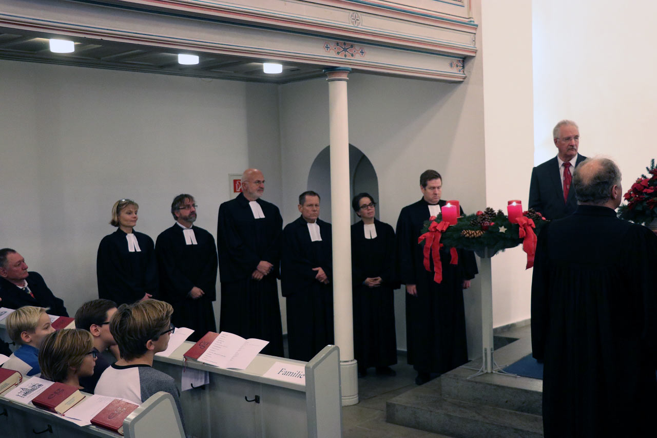 Superintendent Jürgen Knabe bat in seiner Einführungsansprache darum, den neuen Pfarrer freundlich aufzunehmen, auch unter den geänderten Bedingungen in der Gemeinde. Nach den Verabschiedungen von Pfarrer Kapff im Juli und von Pfarrer Frank Müllenmeister, der eine 50-Prozent-Stelle besetzte, im Januar, hat die Gemeinde jetzt nicht mehr anderthalb Pfarrstellen, sondern nur noch eine ganze Pfarrstelle für die Gemeinde mit 3400 Gemeindegliedern.
