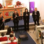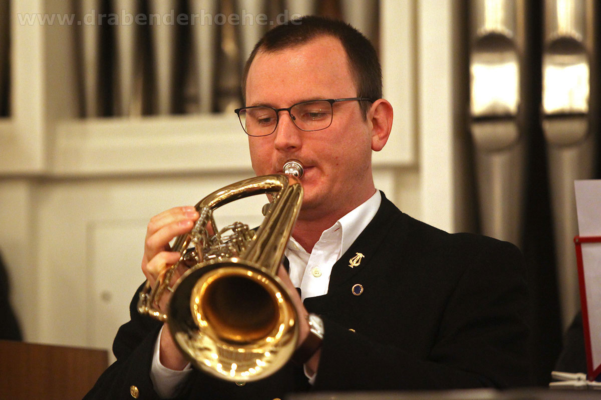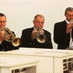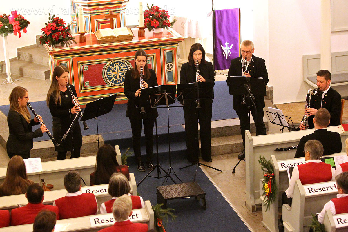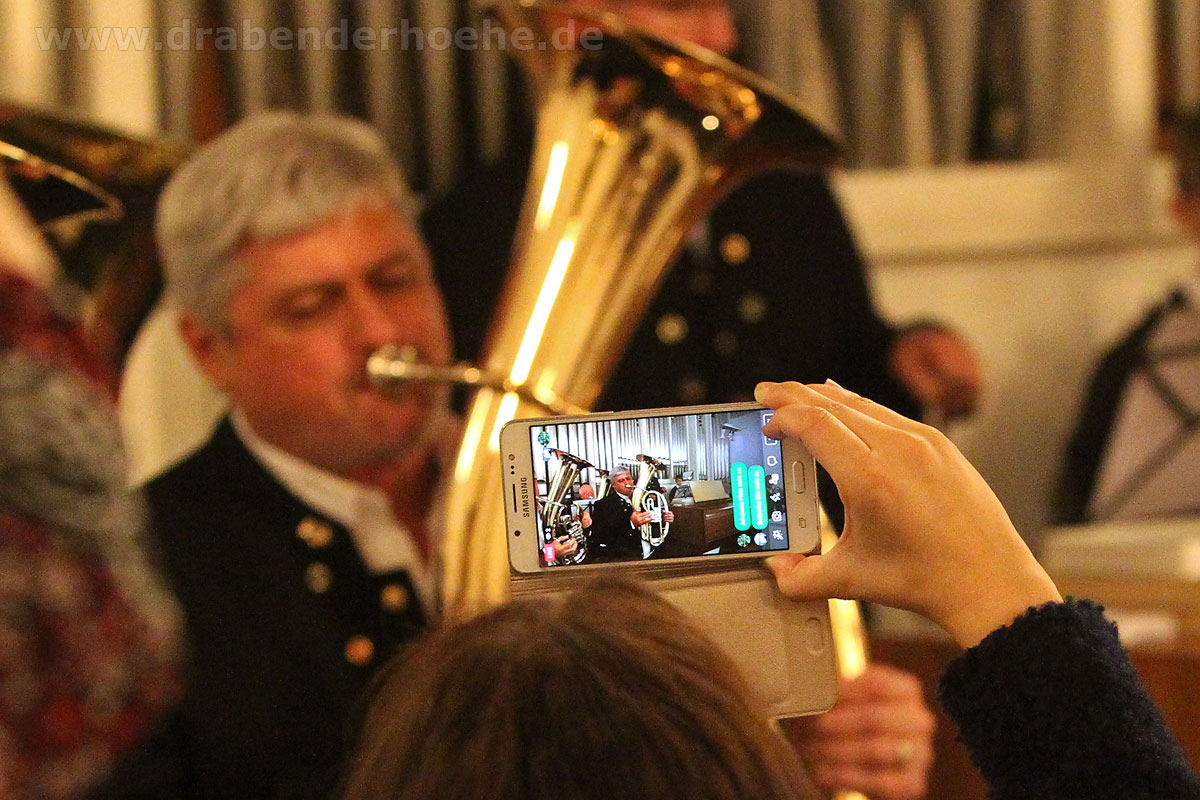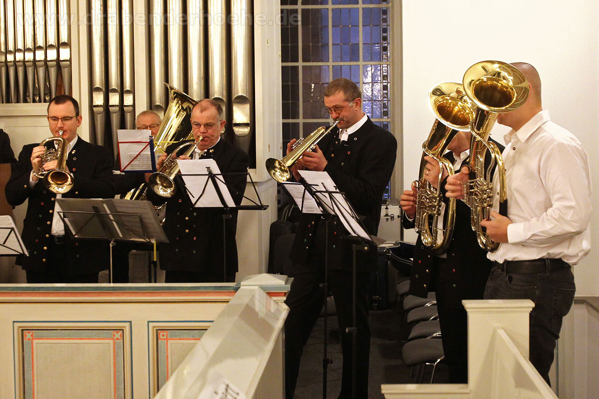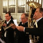 Hirtenlieder hatten die Bläser unter anderem im Gepäck: Aus Südtirol das „Bozener Hirtenlied“ und von Karl Edelmann die Bläser Tradition „Tuats eilends erwachen“ sowie von H. Moser eine Weise aus Oberösterreich. Harmonisch auch das Zusammenwirken von Chor und Bläser beim Lied „Für uns alle“ von Alfons Weindorf, indem es unter anderem heißt: „Für uns alle hier auf Erden, Glück und Frieden in dieser Zeit. Lass die Hoffnung Wahrheit werden, schenk den Menschen Menschlichkeit….!“ Wer kennt es nicht: „Aber Heidschi, Bumbeidschi…“ Michael Schumachers arrangierte es für Bläser. Dafür gingen die im Kirchraum spielenden Musikerinnen und Musiker mit Notenständer, Querflöte und Klarinette ebenfalls auf die Empore, ließen danach noch „Still, still, still“ erklingen und vor dem geistigen Auge so manch eines Zuhörers erschienen Hirten auf den Feldern und das Kind in der Krippe.