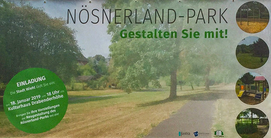 Die Stadt Wiehl hat in 2018 die Erstellung eines Integrierten Handlungskonzeptes für den Ortsteil Drabenderhöhe in Auftrag gegeben. Neben der Neugestaltung des Kultur- und Jugendhauses wünschen sich die Bürgerinnen und Bürger eine verbesserte Gestaltung und Aufenthaltsqualität des Nösnerlandparks, so das Ergebnis eines Wiehlgesprächs im Herbst 2018 zur Zukunft von Drabenderhöhe.