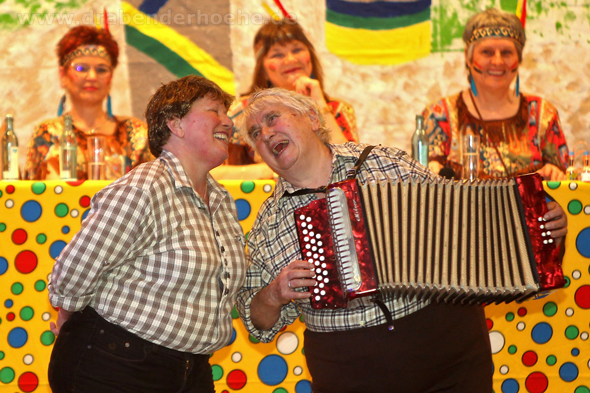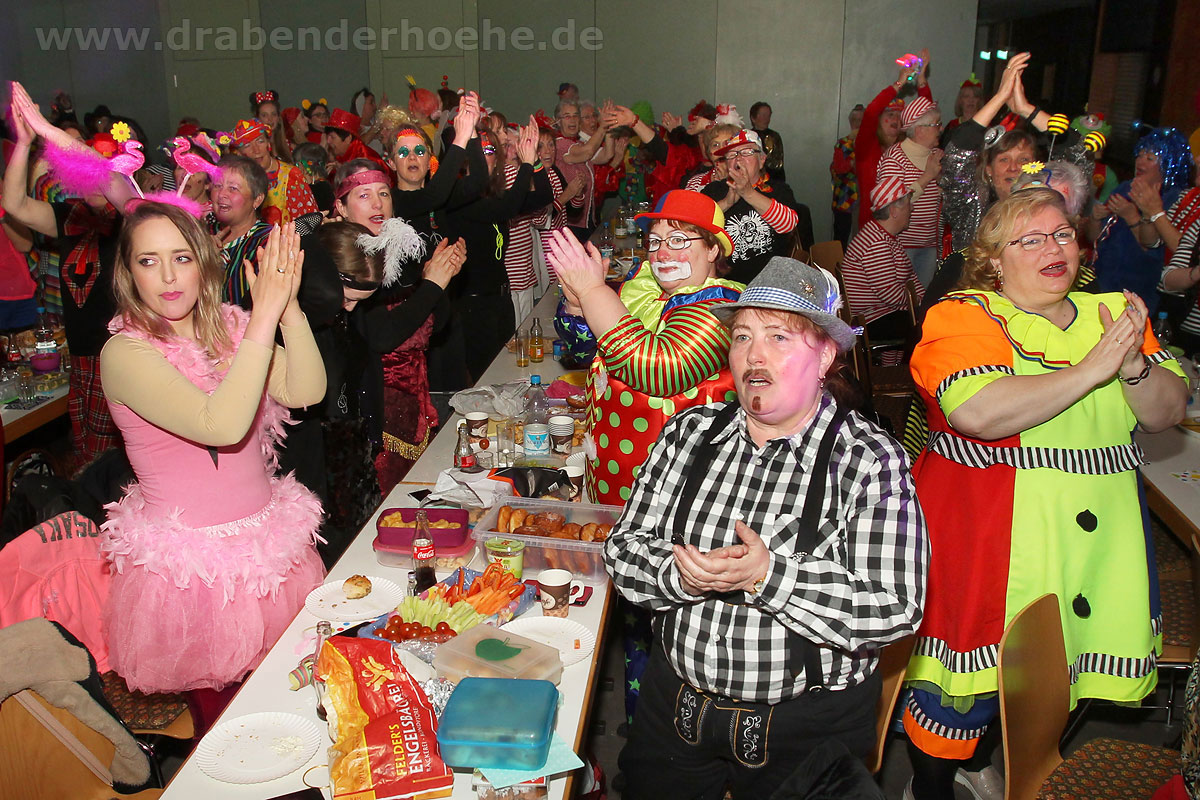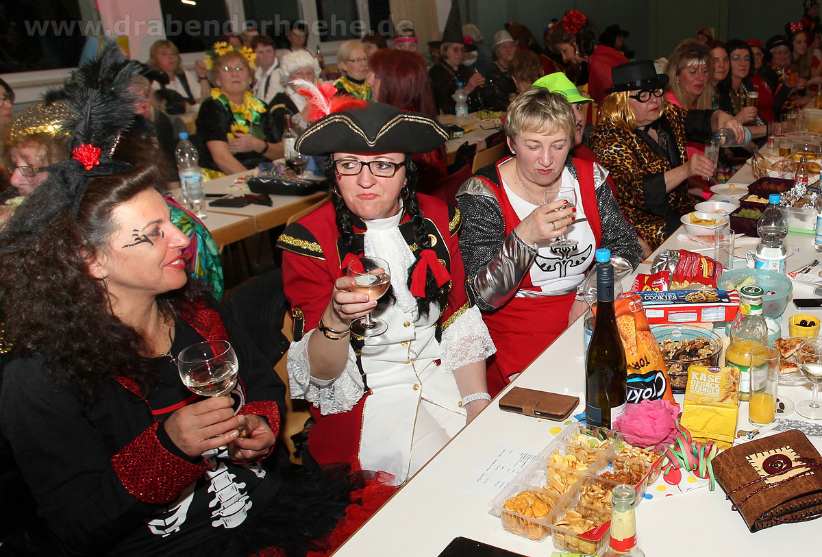 Die jecken Drabenderhöher Wiever vergaßen die Zeit und tauchten beim Lachen, Tanzen, Schunkeln und Singen an Weiberfastnacht am 28. Februar 2019 mit dem Frauenverein in die Tiefen des Karnevals ab. Gleich zu Beginn, als die Mädel des Elferrats in Indianerkostümen zu kölschen Tönen die Bühne mit schmissigen Tänzen enterten, riss es die bunt kostümierten Närrinnen von den Stühlen.