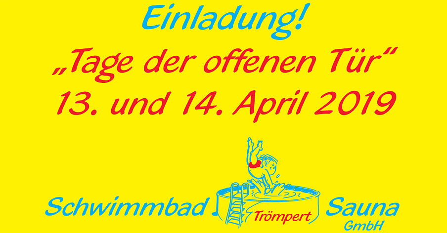 Schwimmbad-Sauna Trömpert lädt am 13. und 14. April 2019 zur Saisoneröffnung ein. Am Samstag und Sonntag haben Besucher von 10 bis 18 Uhr Gelegenheit sich umfassend zu informieren.