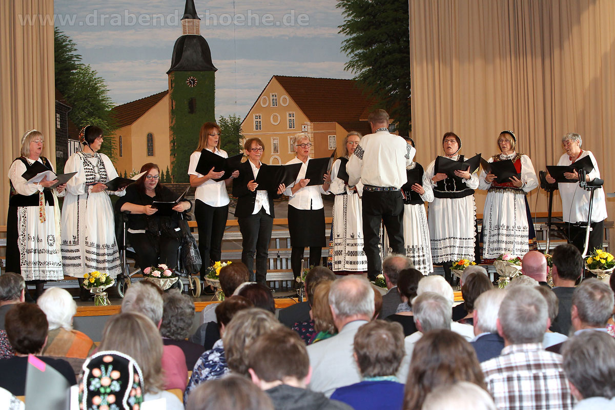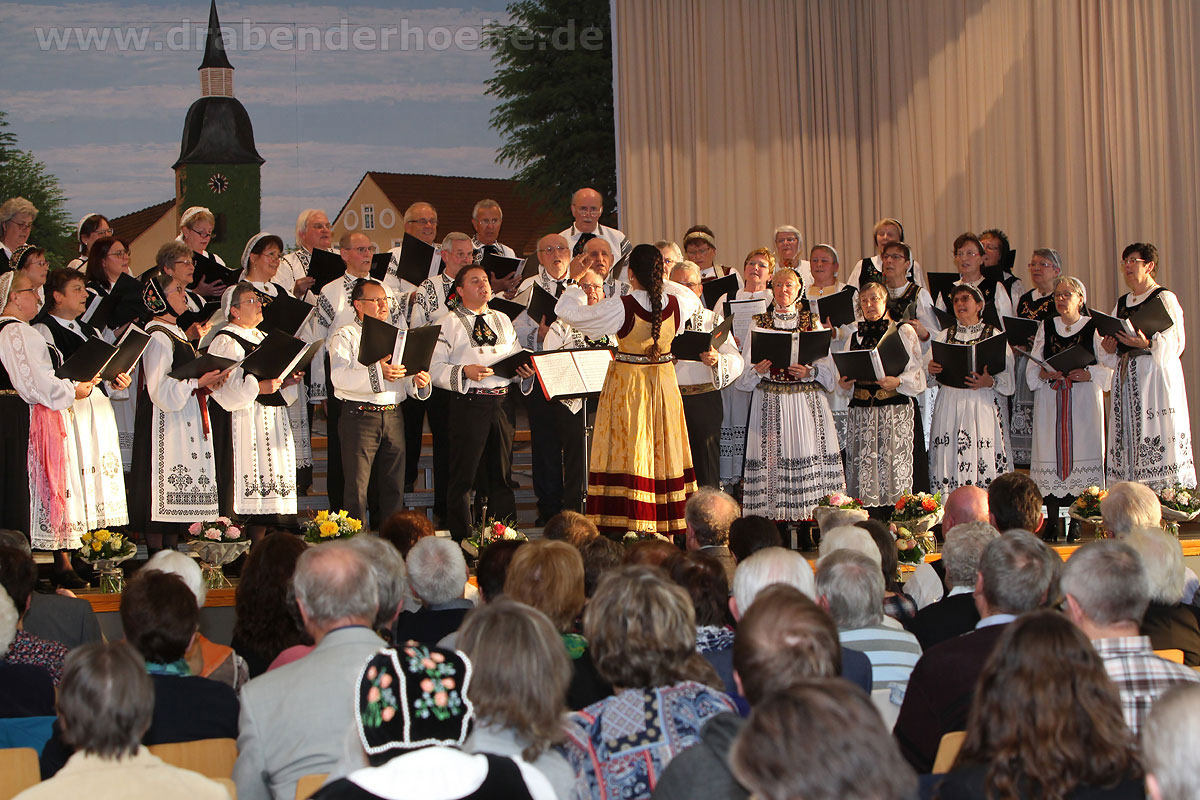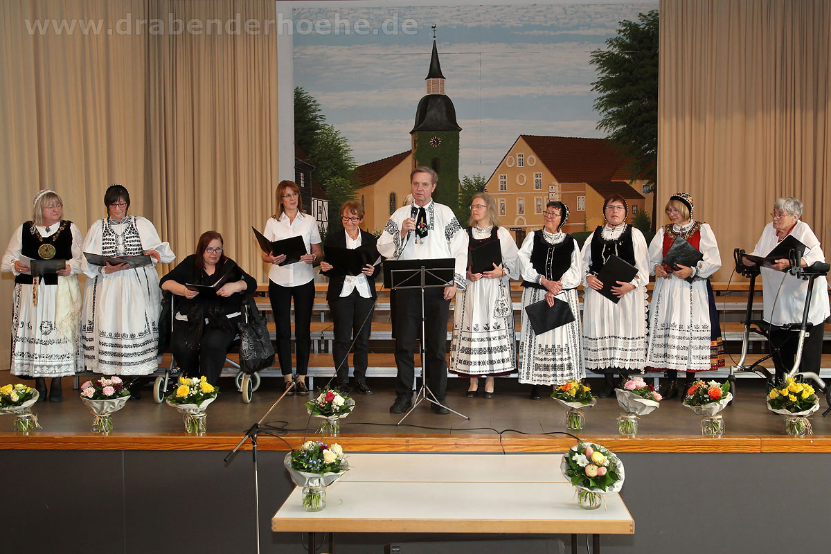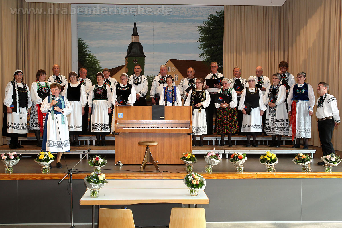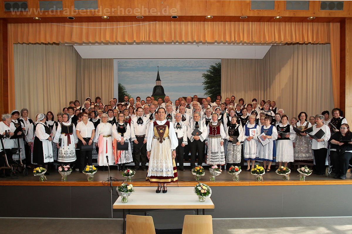 Vorsitzende Anneliese Hüll stellte dann den Honterus-Chor Drabenderhöhe vor, der als Gastgeber für dieses Treffen fungierte und 1966 gegründet wurde. Zurzeit zählt er 43 Sängerinnen und Sänger, die Frühjahrs- und Weihnachtskonzerte geben und eine eigene Theatergruppe besitzen, die jährlich den Katharinenball mit Aufführungen bereichert. Mit „Wir schenken euch ein Lied“ , der Titelmelodie aus dem „Zauber der Musik“ von Bühler und der Farbe des Frühlings aus „Zirkel der Jahreszeiten“ verzauberte der Chor das Publikum.