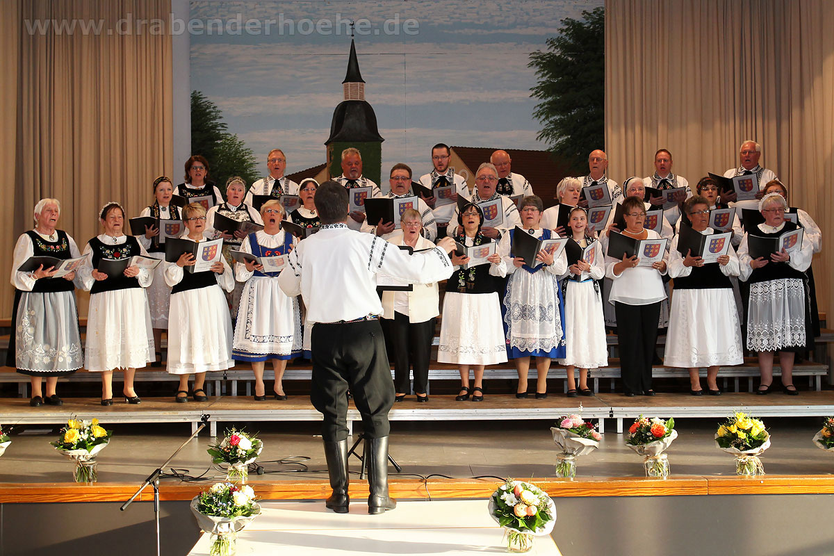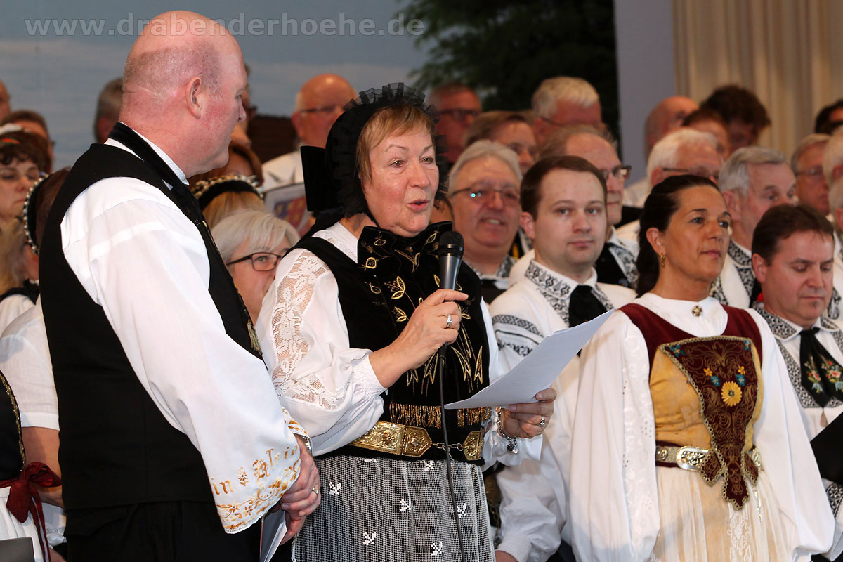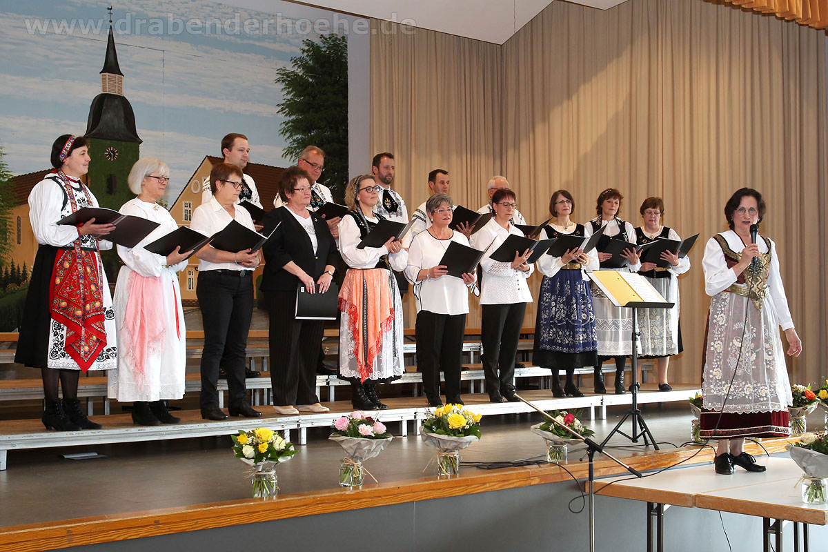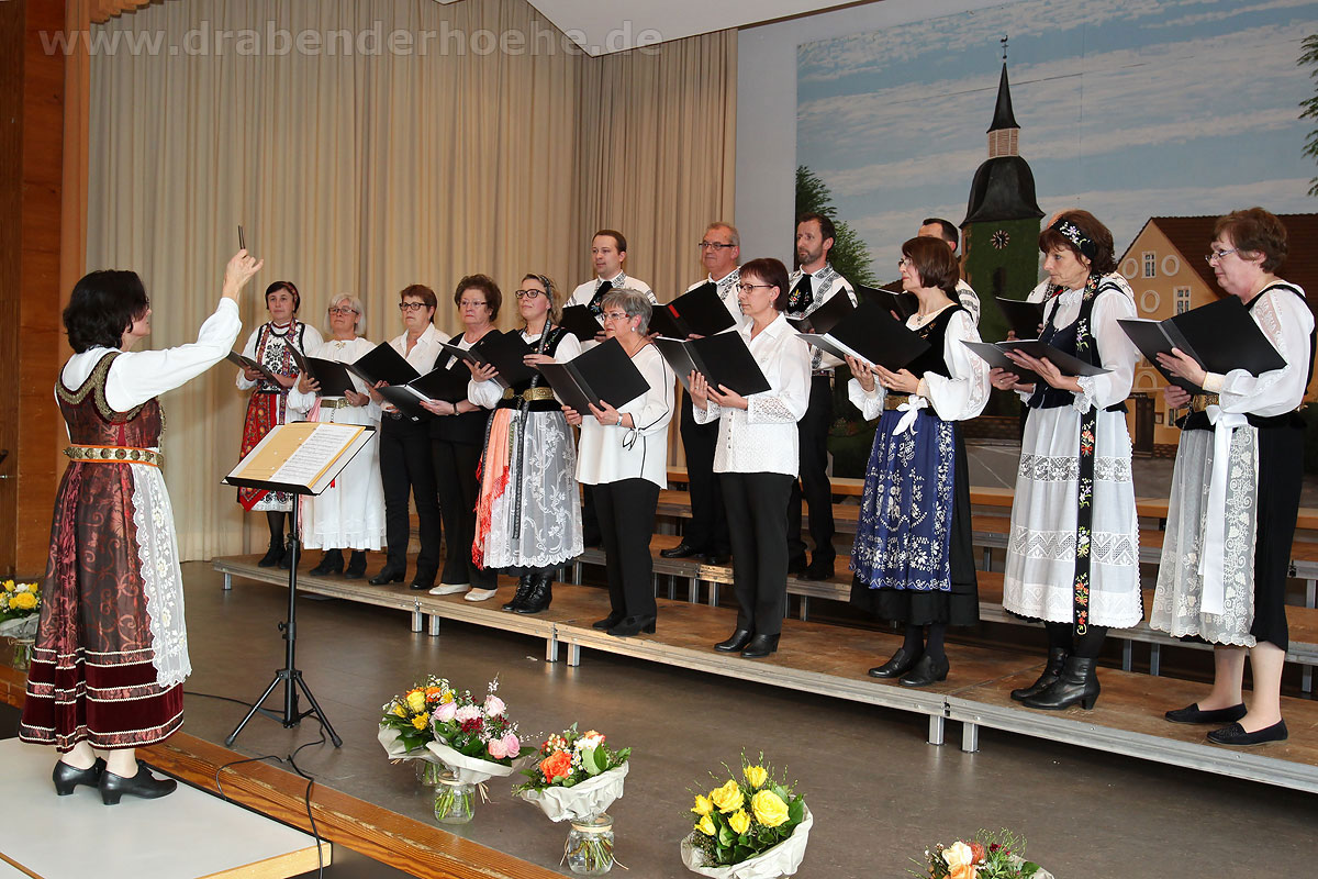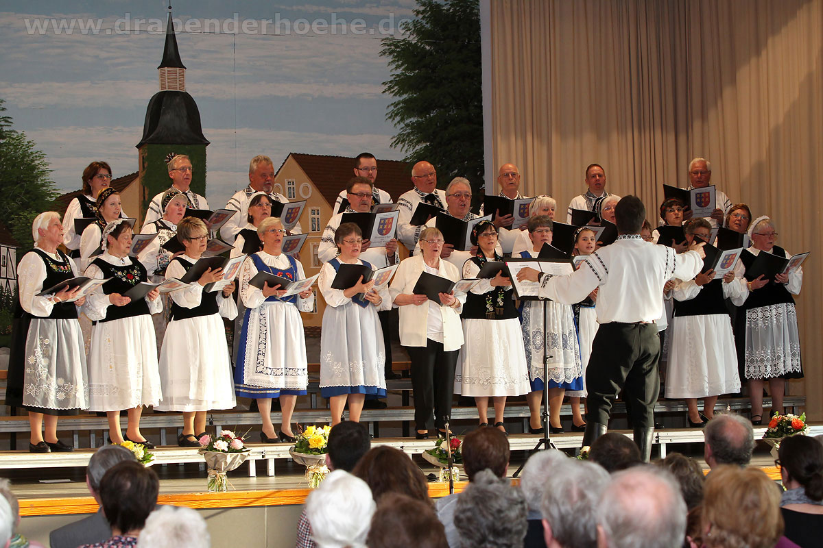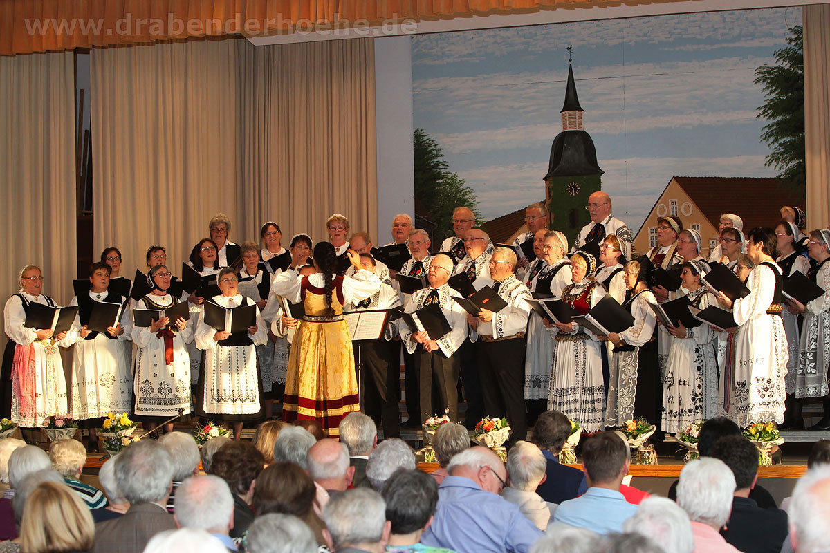 Vorsitzende Anneliese Hüll stellte dann den Honterus-Chor Drabenderhöhe vor, der als Gastgeber für dieses Treffen fungierte und 1966 gegründet wurde. Zurzeit zählt er 43 Sängerinnen und Sänger, die Frühjahrs- und Weihnachtskonzerte geben und eine eigene Theatergruppe besitzen, die jährlich den Katharinenball mit Aufführungen bereichert. Mit „Wir schenken euch ein Lied“ , der Titelmelodie aus dem „Zauber der Musik“ von Bühler und der Farbe des Frühlings aus „Zirkel der Jahreszeiten“ verzauberte der Chor das Publikum.