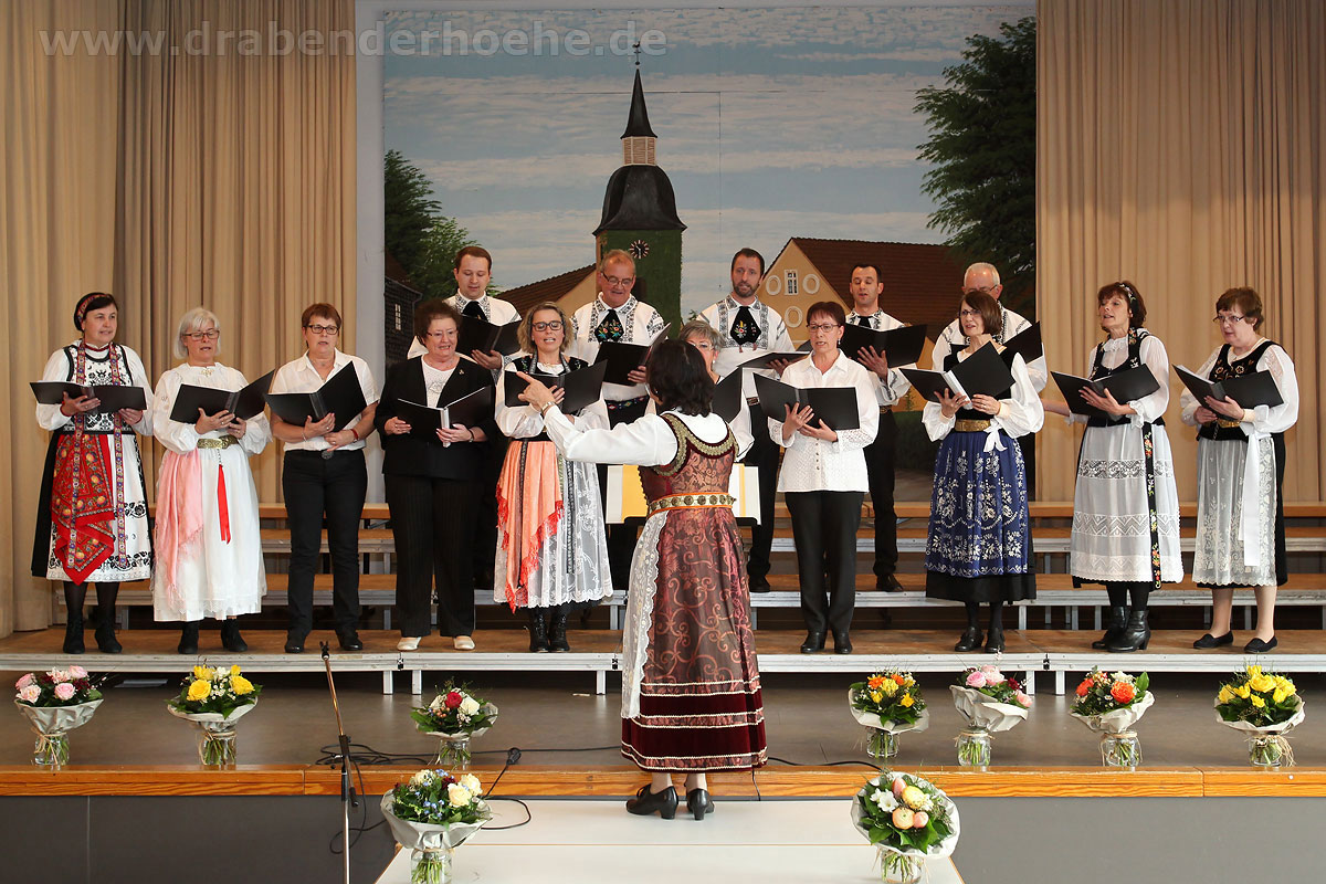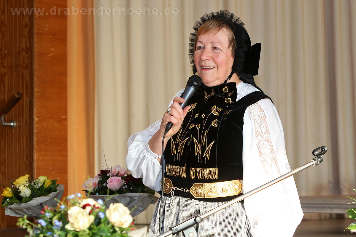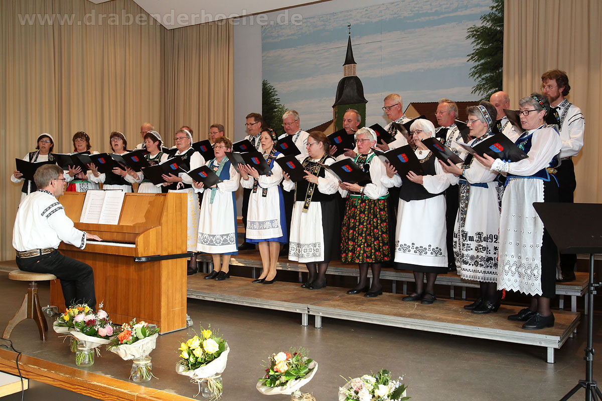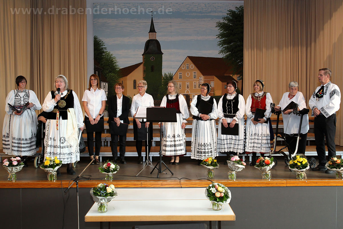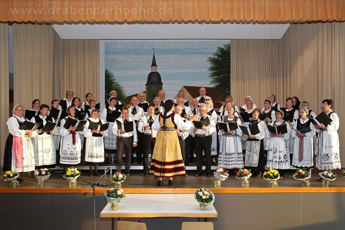 Vorsitzende Anneliese Hüll stellte dann den Honterus-Chor Drabenderhöhe vor, der als Gastgeber für dieses Treffen fungierte und 1966 gegründet wurde. Zurzeit zählt er 43 Sängerinnen und Sänger, die Frühjahrs- und Weihnachtskonzerte geben und eine eigene Theatergruppe besitzen, die jährlich den Katharinenball mit Aufführungen bereichert. Mit „Wir schenken euch ein Lied“ , der Titelmelodie aus dem „Zauber der Musik“ von Bühler und der Farbe des Frühlings aus „Zirkel der Jahreszeiten“ verzauberte der Chor das Publikum.