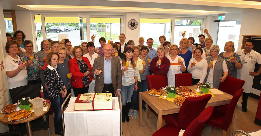 Es war eine würdevolle Abschiedsstunde, die die Mitarbeiterinnen und Mitarbeiter des Alten- und Pflegeheims Haus Siebenbürgen-Drabenderhöhe für ihren langjährigen Chef und Heimleiter Friedrich Barth vorbereitet hatten, der in den Ruhestand geht: Lieder wurden gesungen, Geschenke überreicht, eine große Torte mit Emblem des Hauses gemeinsam verzehrt.