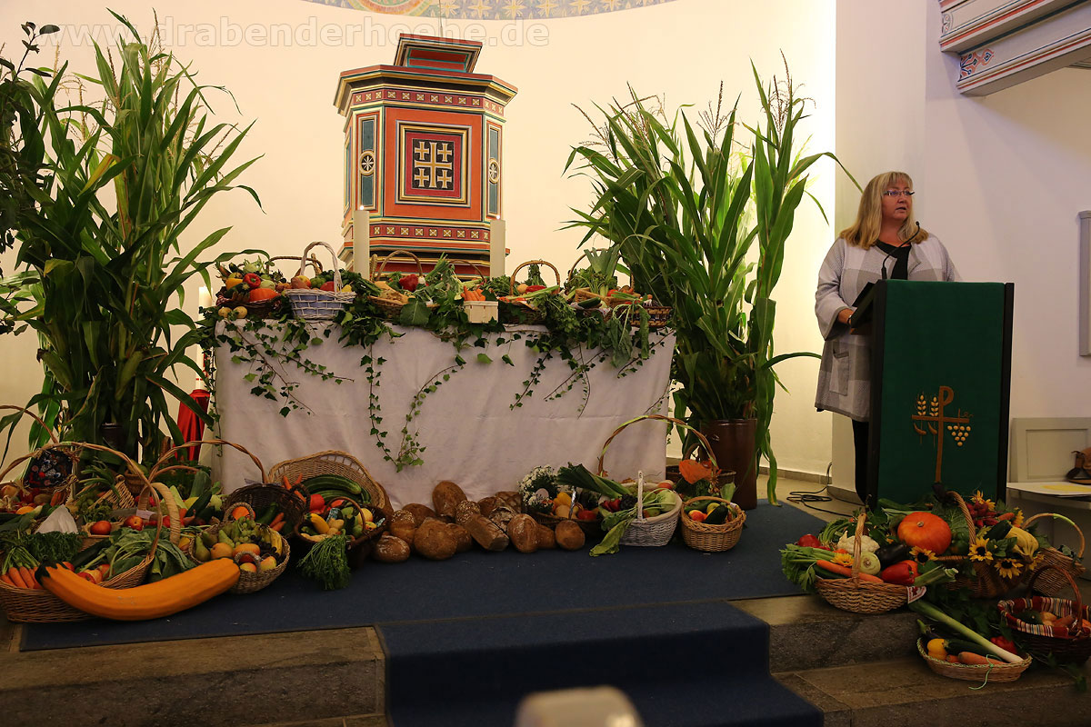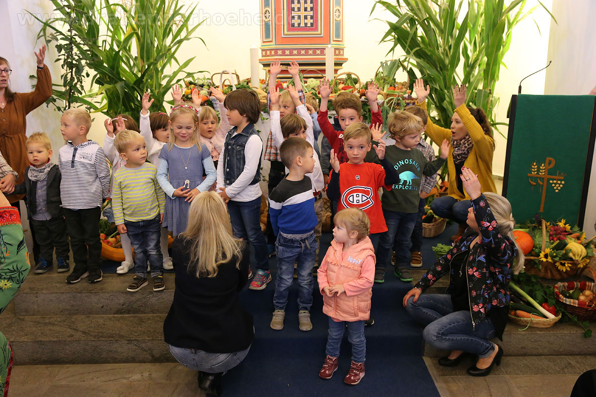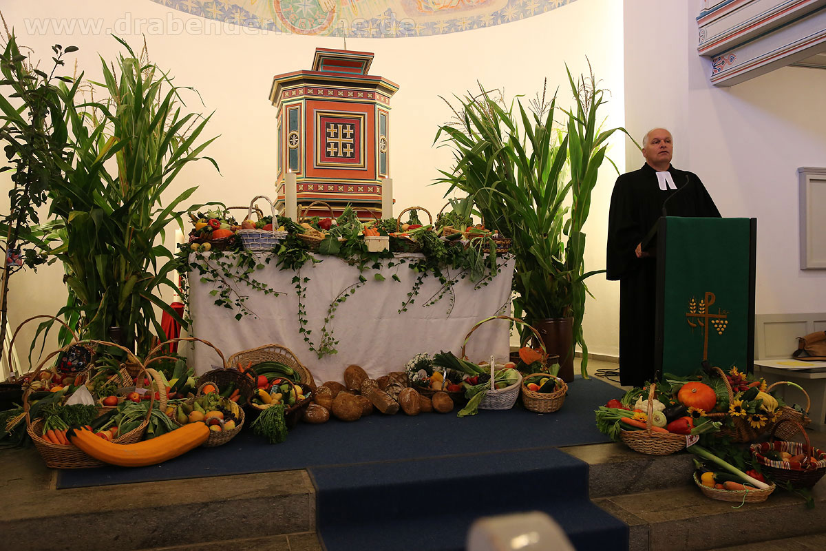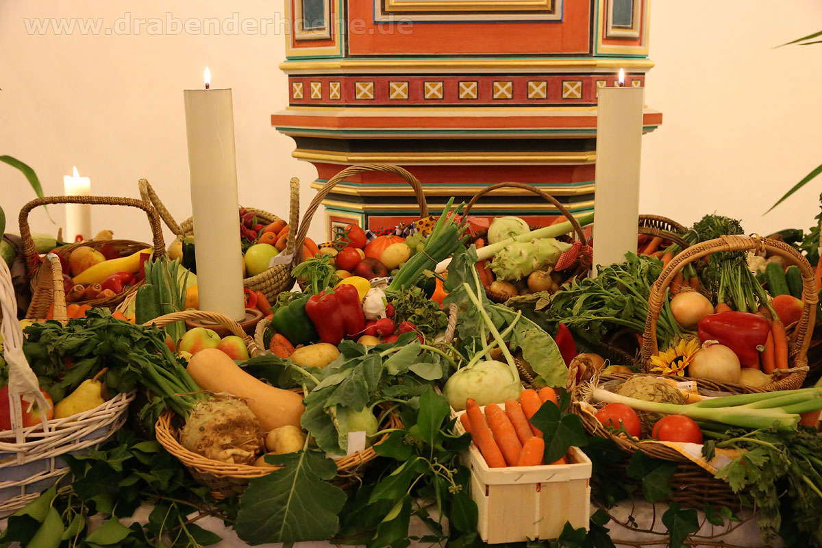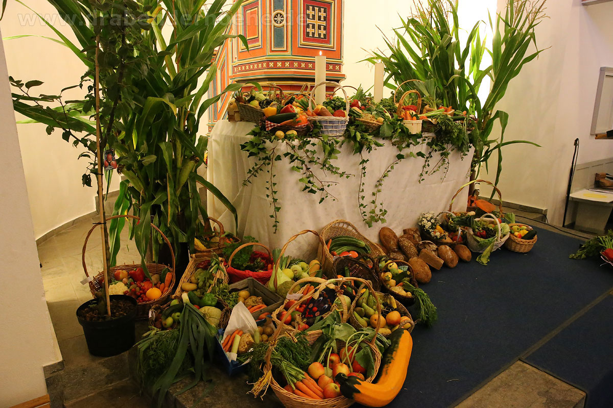 Anlässlich des Erntedankfestes fand am vergangenen Sonntag wieder ein Familiengottesdienst statt. Durch die Gemüse- und Obstspenden der Kinder des Ev. Kindergartens und die Spenden weiterer Gemeindeglieder wurde der Altar zu einem reich gedeckten Erntedanktisch.