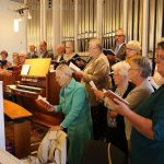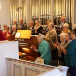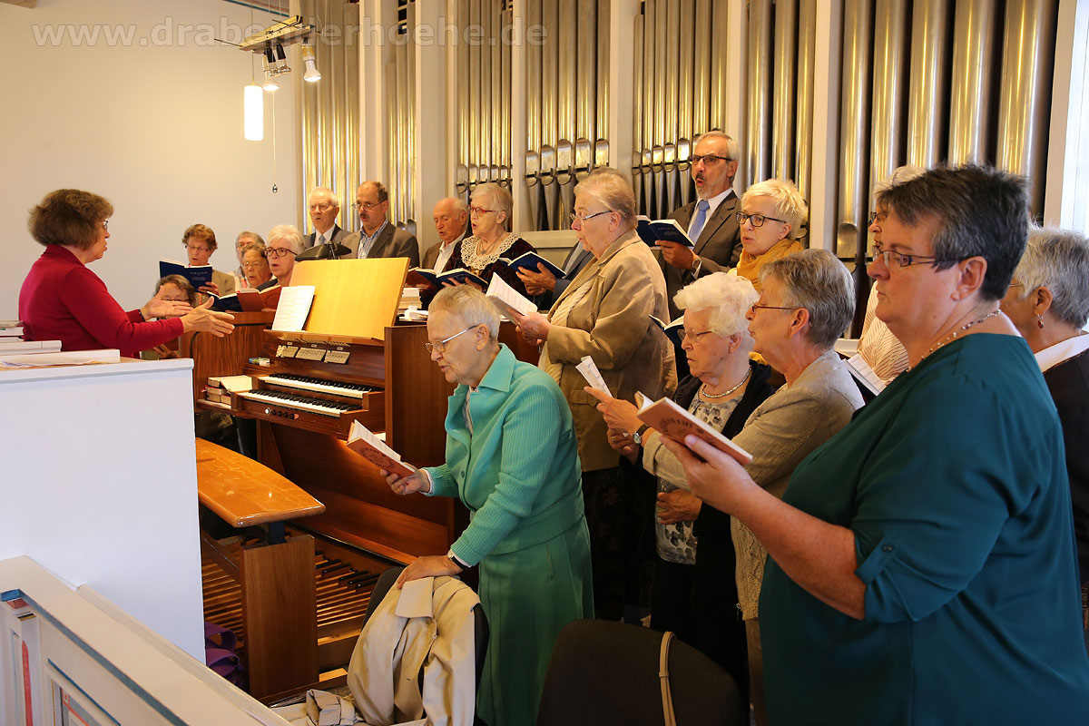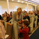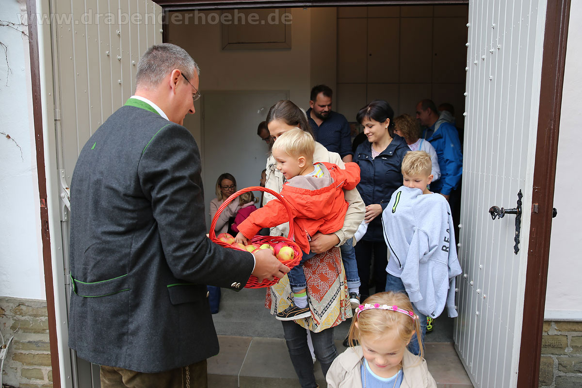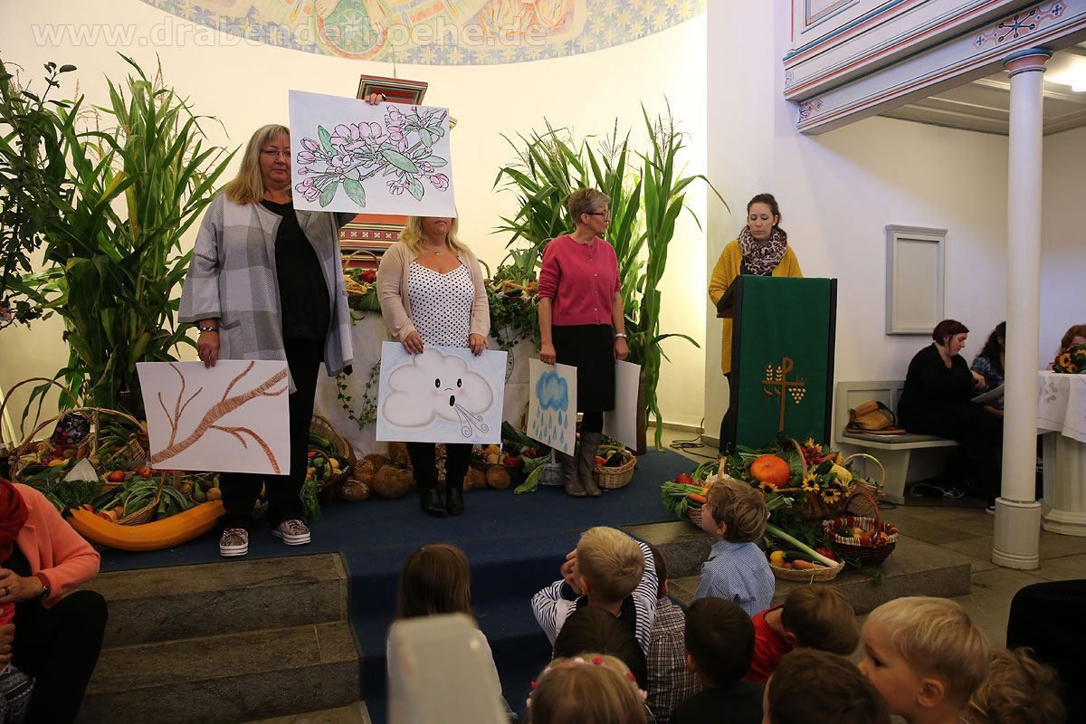 Der Apfelbaum stand im Mittelpunkt des Gottesdienstes. Mit Liedern, Texten und Geschichten wurde deutlich gemacht, dass durch den Wind, die Sonne und den Regen, die von Gott geschickt werden, aus den Blüten des Baumes die Äpfel wachsen. So konnte wieder einmal Danke gesagt werden für die reiche Ernte in diesem Jahr.