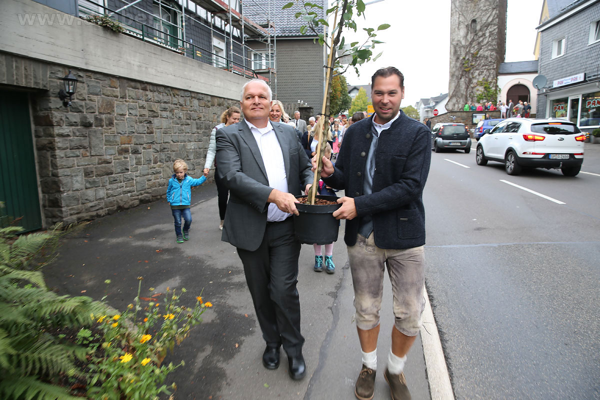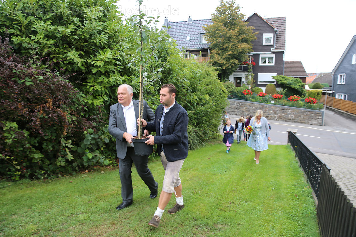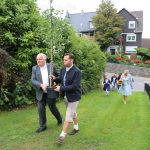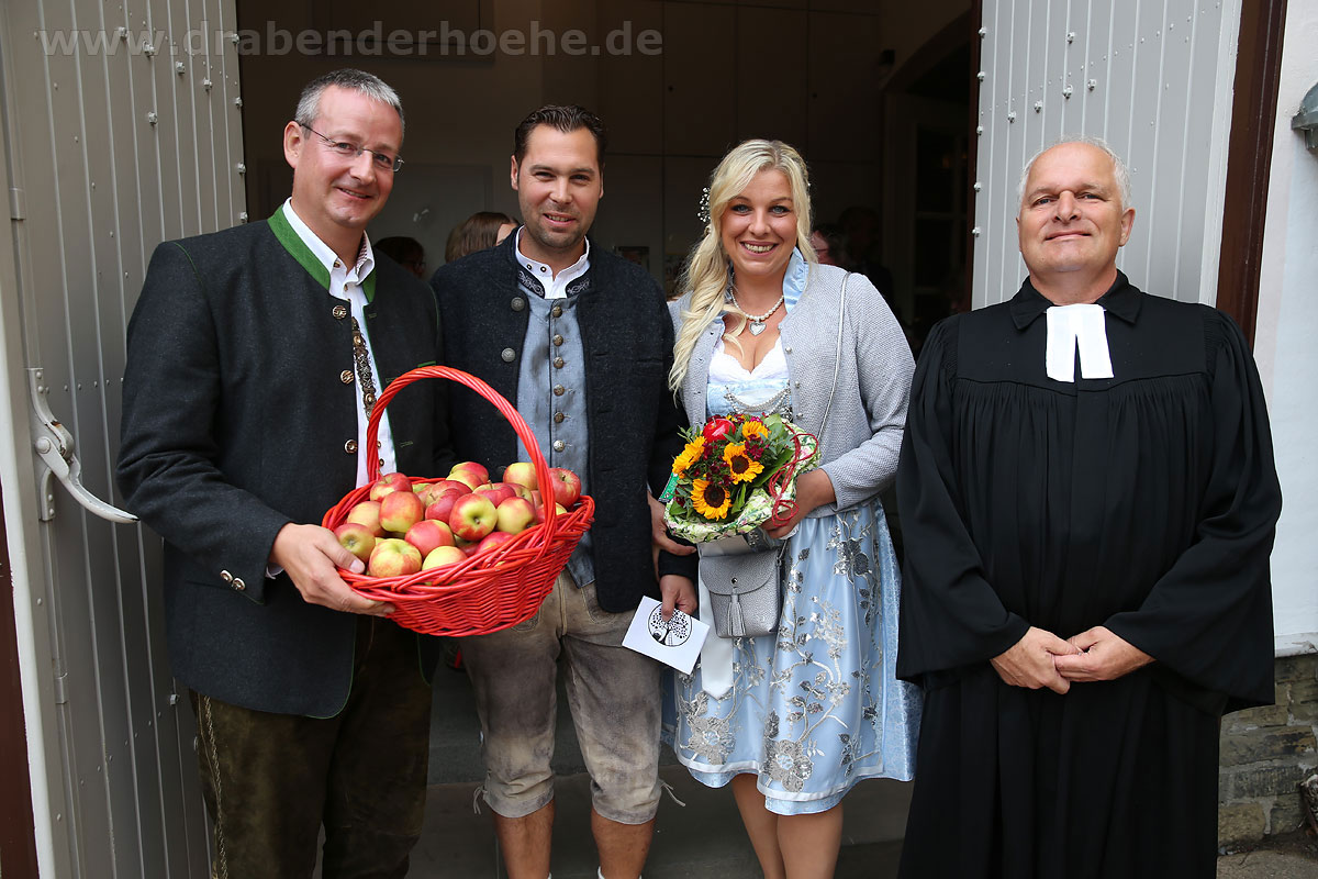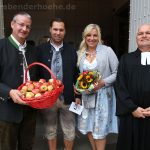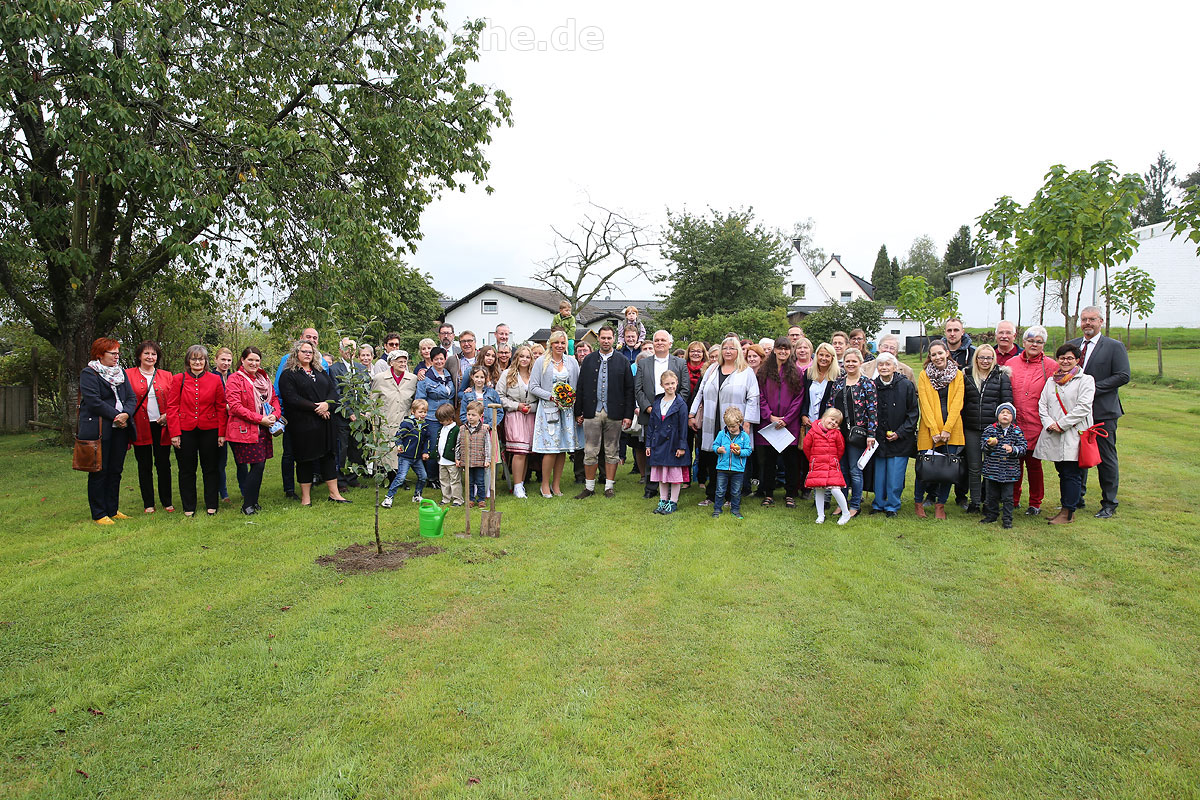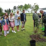 Nach dem Gottesdienst wurden vom Erntepaar Noel Lutter-Denni und André Denni, gemeinsam mit der Gottesdienstgemeinde, auf der Pfarrwiese ein Apfelbaum gepflanzt.