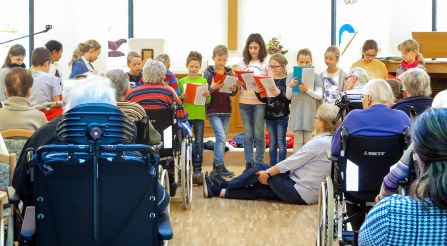 Das war eine tolle Idee! 32 Mädchen und Jungen der Drabenderhöher Grundschule marschierten munter plappernd am Freitag, 15. November, in die Kapelle des Alten- und Pflegeheims um dort im Rahmen des bundesweiten Vorlesetags den Bewohnerinnen und Bewohnern kleine Geschichten vorzulesen.