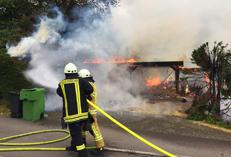 In Immen brannte am 8. Juli 2019, gegen 11:00 Uhr, ein Carport. Vier Einheiten der Feuerwehr und ein Rettungswagen waren im Einsatz.