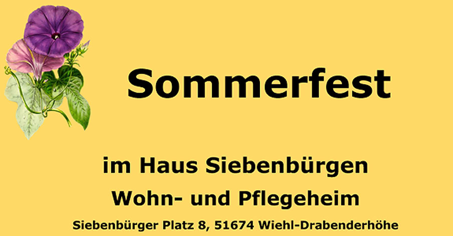 Am Samstag, 13. Juli 2019, findet im Haus Siebenbürgen, Wohn- und Pflegeheim, Siebenbürger Platz 8, ein Sommerfest statt.