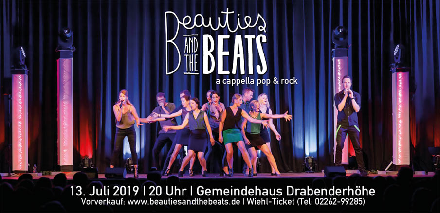 Am 13. Juli 2019, 20.00 Uhr, findet im Drabenderhöher Gemeindehaus ein A-cappella-Konzert mit „Beauties and the Beats“ statt. Der Chor ist in Neckarsulm ansässig und wird ein Wochenende in Drabenderhöhe verbringen, da eine Sängerin gebürtige Drabenderhöherin ist.