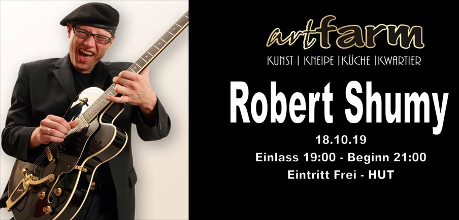 Am Freitag, 18. Oktober 2019 ist Robert Shumy in der Artfarm Drabenderhöhe zu Gast. Einlass ist um 19:00 Uhr, Beginn um 21:00 Uhr. Der Eintritt ist frei, der Hut geht rum.